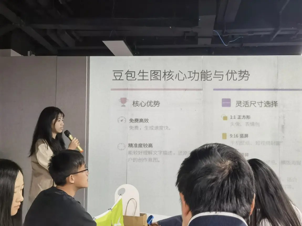 一位身着浅米色西装,从容地讲述着「智敬她力量」的活动初衷,从女性车主的故事聊到品牌的温度关怀,眼神里满是真诚;另一位则聚焦AI创作,清晰拆解豆包生图的核心优势——免费高效、精准还原创意、灵活尺寸选择,让在场的大小朋友都能快速get到AI创作的乐趣。