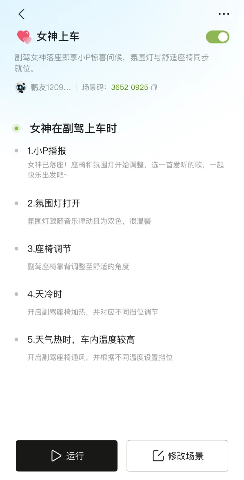 “检测到女神已落座。”熟悉的小P声音响起,比平时轻柔了几分,“座椅加热已开启,今日室外温度12摄氏度,注意保暖哦。”