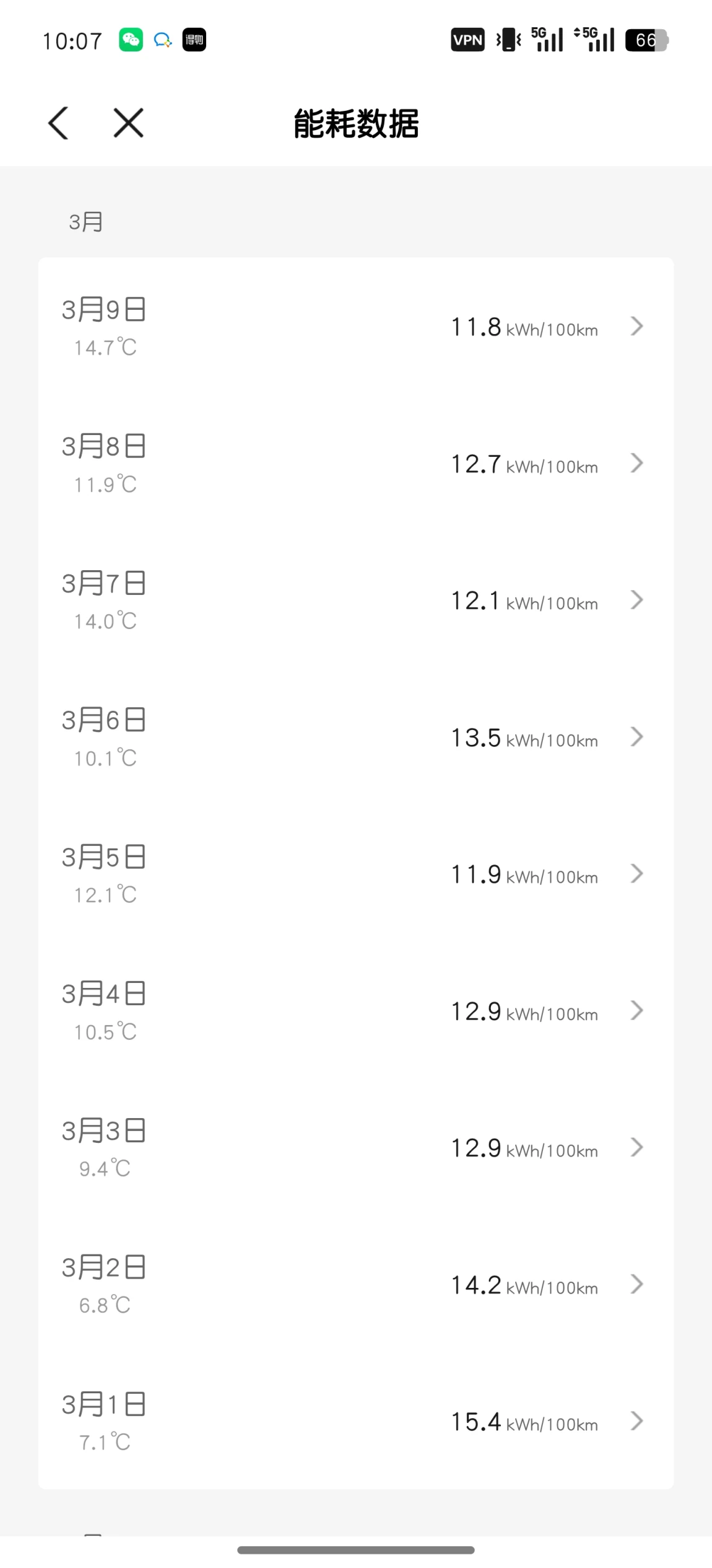- 春日气温10-15℃,优先用“通风+座椅加热”组合(座椅加热功率低于空调制热)。比如3月8日气温11.9℃,我开启座椅加热(2挡)+ 空调通风,能耗比纯开制热低1.2kWh/100km。