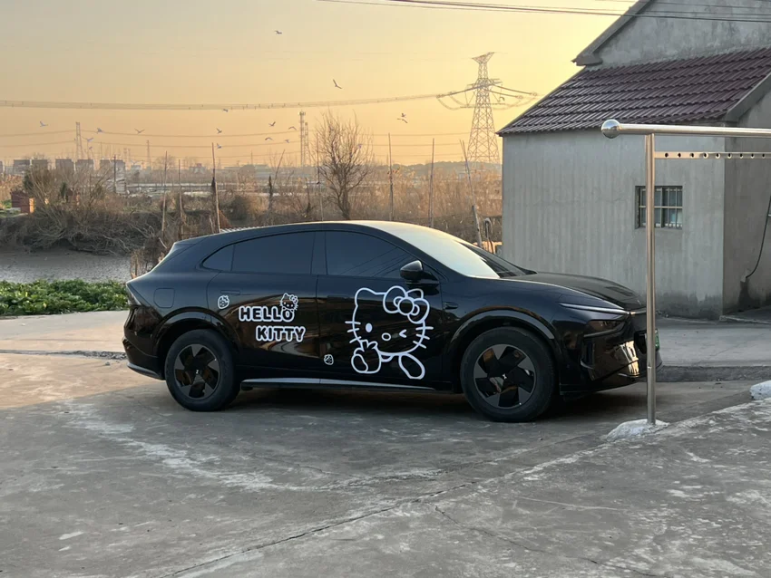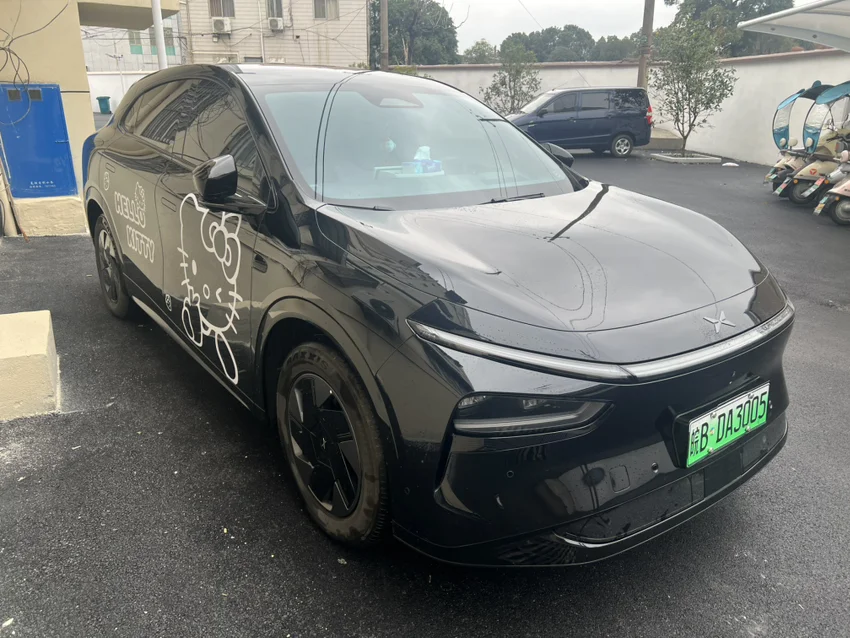 #鹏友共创# 我的是小鹏G7,因为我女儿特别喜欢哈喽Kitty,逮到邻居家上的车贴就很兴奋的想要,故而我也想满足宝贝这个小心思,正驾这边一个大大的Kitty,屁股那是个大橘,宝宝小名叫橘橘,小字体的大,副驾那侧就是正常的Kitty字样了,我觉得挺好看,你们说呢