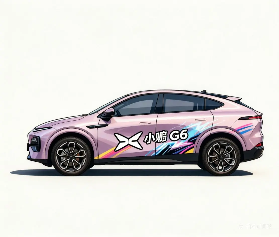 #鹏友共创# 这张动漫风格的小鹏G6车贴设计是使用千问Qwen-Image 2.0模型生成的,它的设计理念如下:将G6拟人化为一位身着流线型机甲的未来少女。拥有与车身同色的柔顺粉紫色长发,发丝飘逸如车身曲线,双眸闪烁着智慧科技的光芒。她优雅地倚靠在缩小版的G6旁,仿佛是守护这辆智能座驾的守护精灵,完美融合了小鹏G6的科技感与动漫的柔美,彰显年轻、时尚与智能的出行理念。