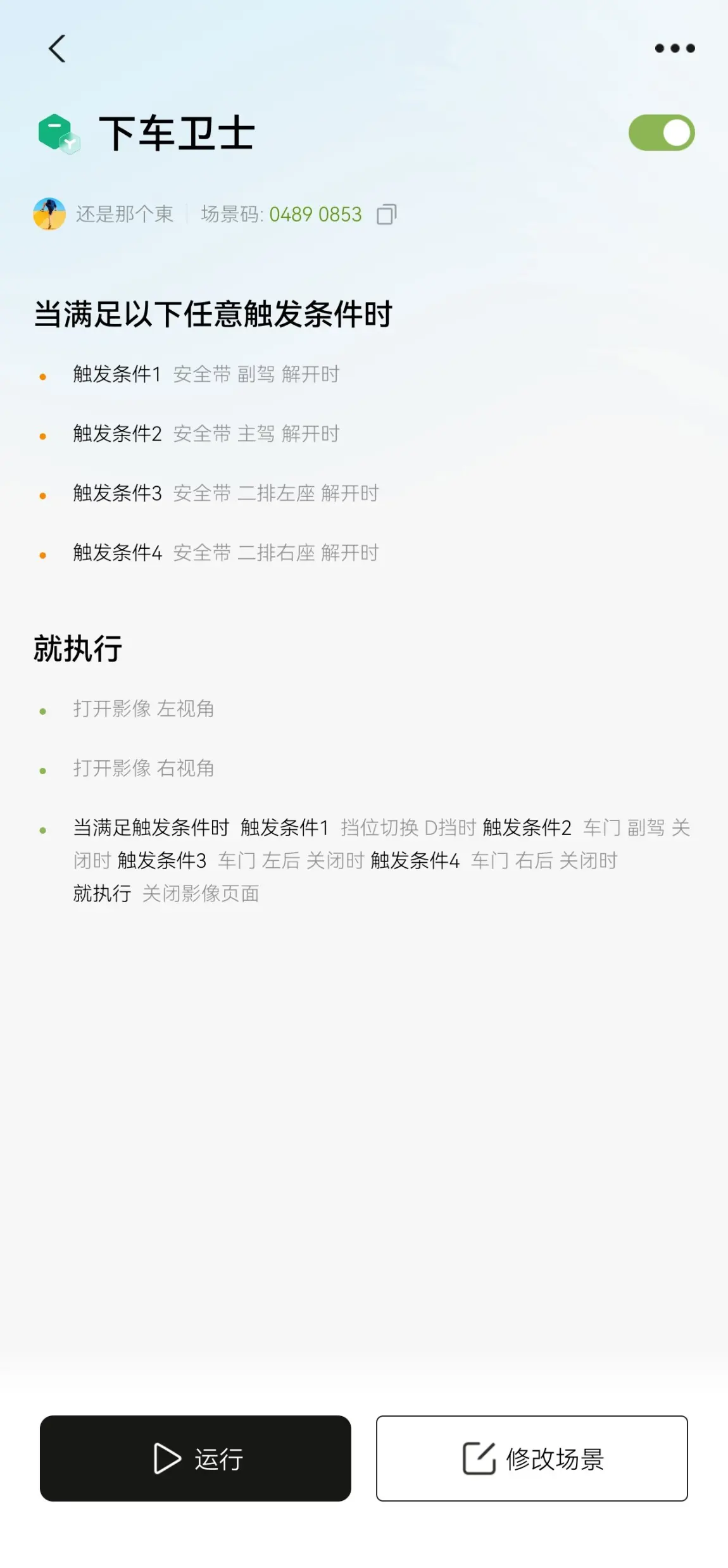 下车卫士真的太好用了,自从添加了这个场景码,感觉停车后安全性直线上升。