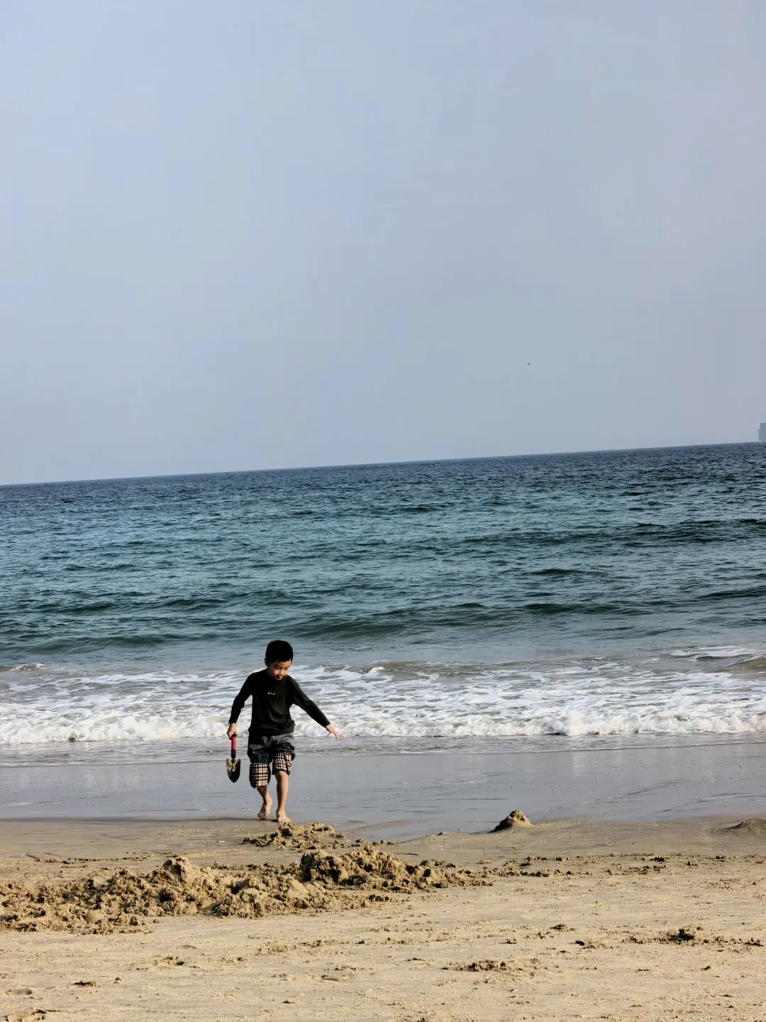说好的穿越东西涌呢?结果看到这么美的沙滩直接把你吸引住了,拿着铲子一会儿挖沙子,一会儿撩海水,忙个不停。早把穿越的事忘个精光。