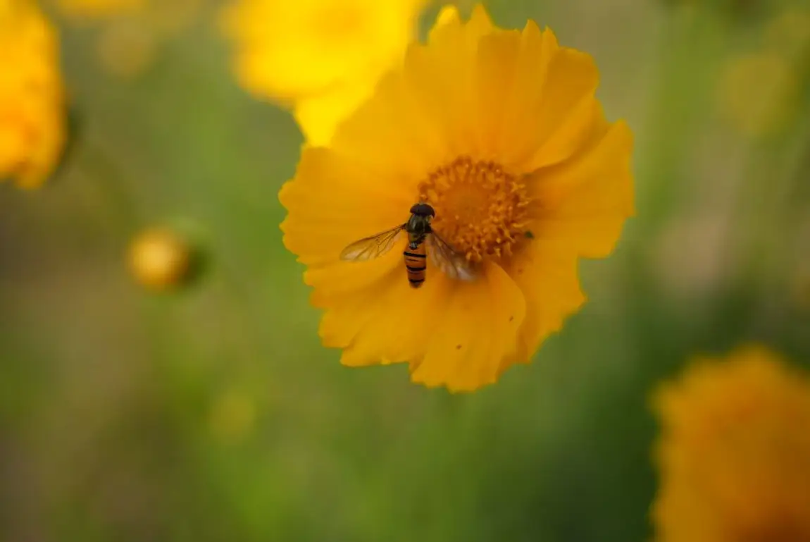 金黄的花田肆意盛开,食蚜蝇停在花瓣间汲取春光,自然的生机在镜头里定格,每一朵花都在诉说春日温柔。