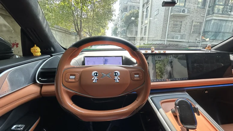将小鹏专属智能交互形象“小P”以对称贴纸形式安置于方向盘小鹏X标两侧,是对品牌情感联结与视觉体验的双重创新设计,既贴合品牌内核,又兼具实用美学与情感温度。