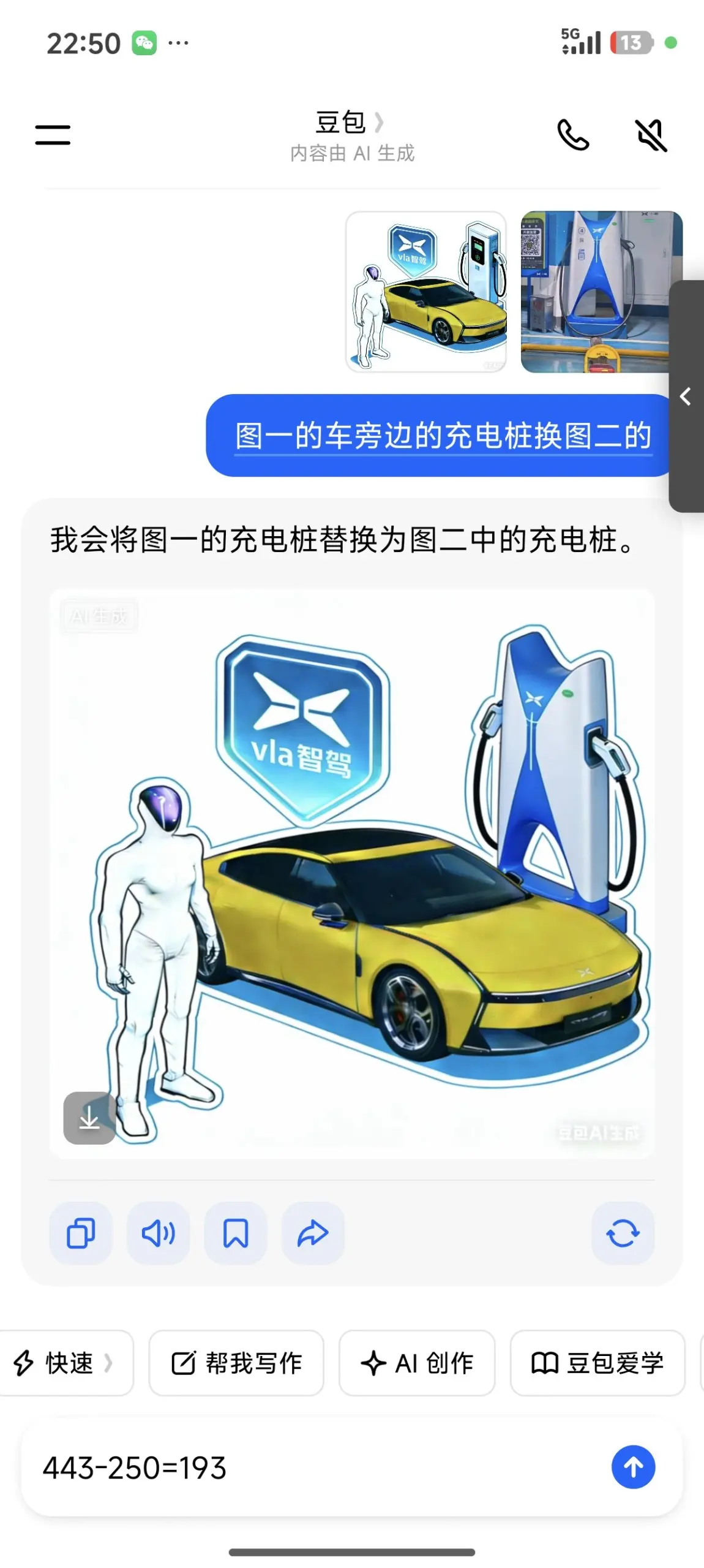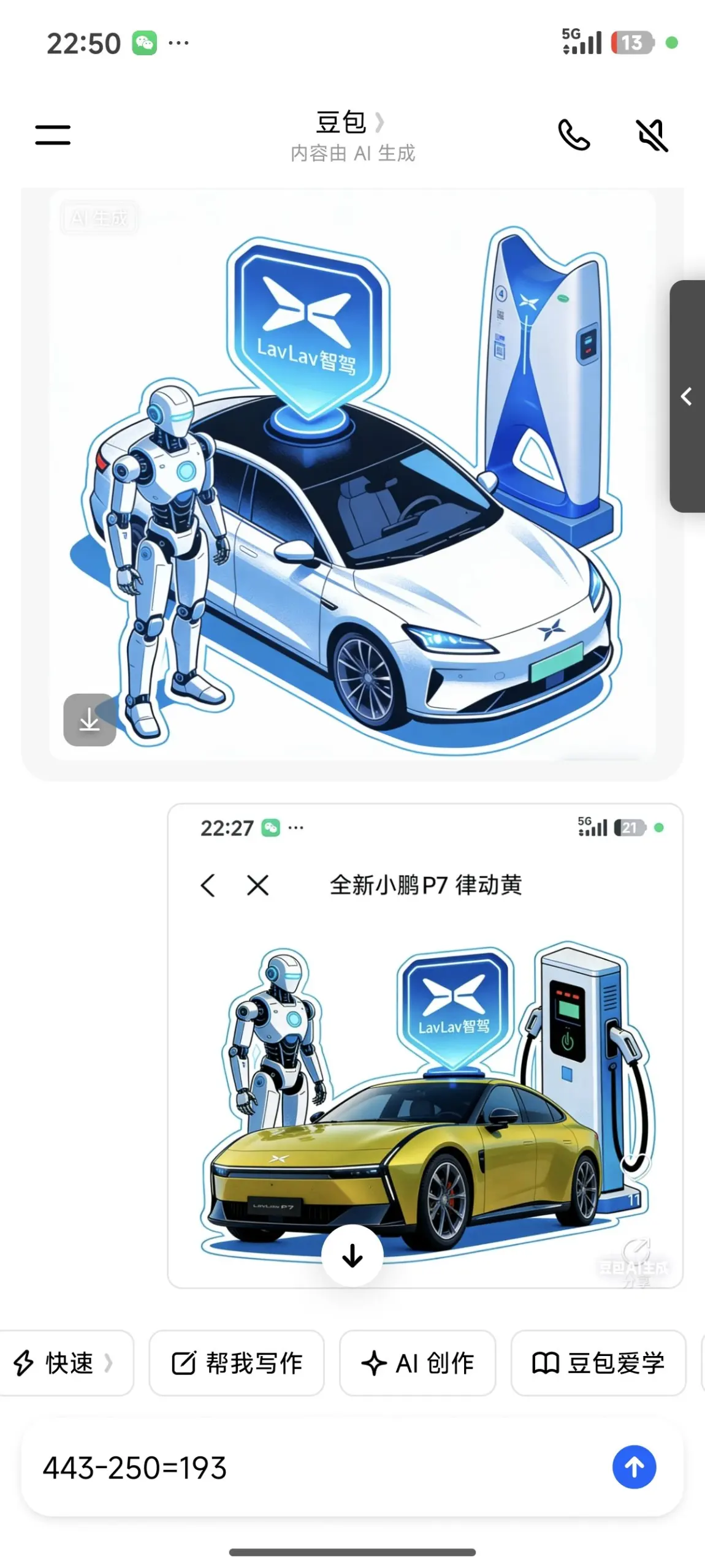 #鹏友共创# 当然是 每年发布最受瞩目的人形机器人,与我们最新的二代智驾vla,以及我特色,独有的小鹏自营充电站,全智慧链,科技与生活融为一体,最贴切生活的三个产品。图一豆包ai生成,始终不满意,多发关键词调教,还得靠自己搜集小鹏新p7的美图 ,发布会的人形机器,更别具一格的小鹏充电桩,融汇到一块,再ps小修做成图四。🌝🌝这版相当满意。