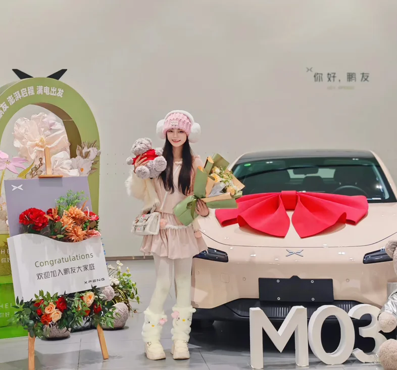 想看看大家提车当天的照片!终于轮到我提车噜🥳专门搭了一身粉去见我的小鹏M03!提车当天就独自开了3小时高速从成都回南充,累并快乐着~你们的车是什么颜色?有没有为提车特意搭配的穿搭呀?想看看大家提车当天的照片!