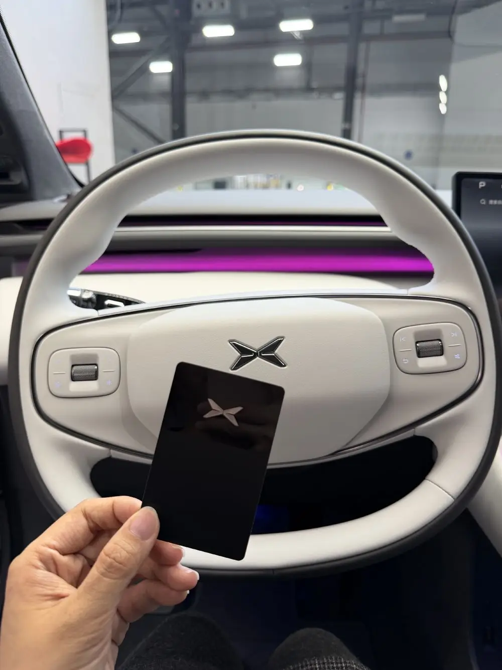 交付专员耐心地帮我们讲解了车辆功能,从车机系统到智能驾驶,每一步都讲得清清楚楚,还亲手把小鹏的实体钥匙卡交到我手里。