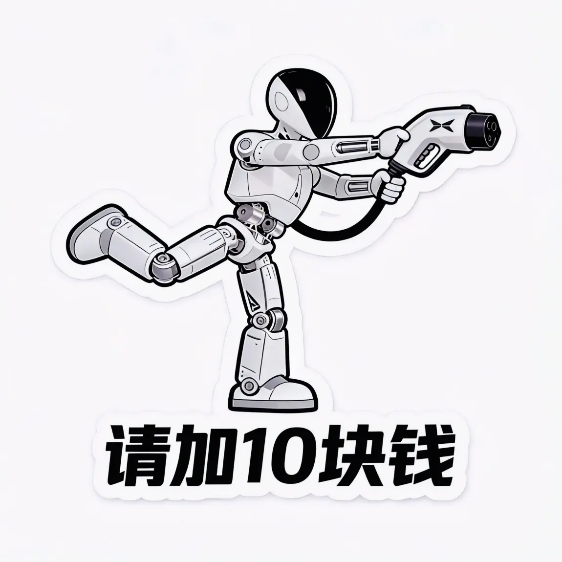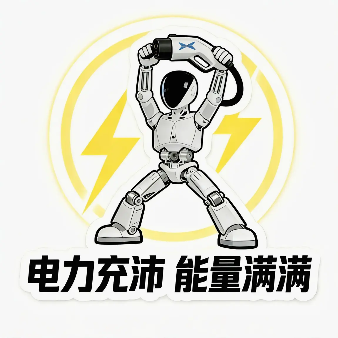 这张卡通机器人充电贴纸,是科技感、品牌属性与生活幽默感的巧妙融合,核心是用轻松的视觉语言传递新能源出行的态度。