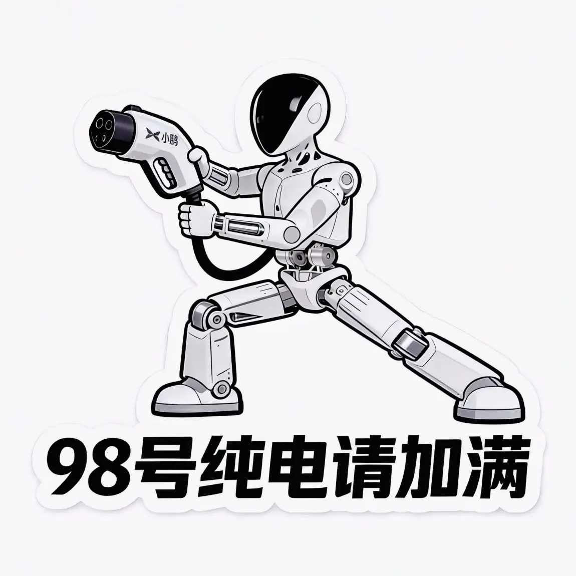- 高举充电枪的姿态充满力量感,搭配小鹏专属X标识,直观传递“为电动车补能”的核心场景,让科技形象落地到真实用车生活。