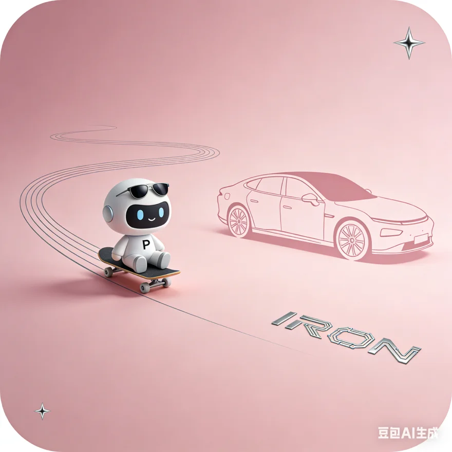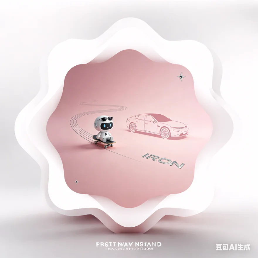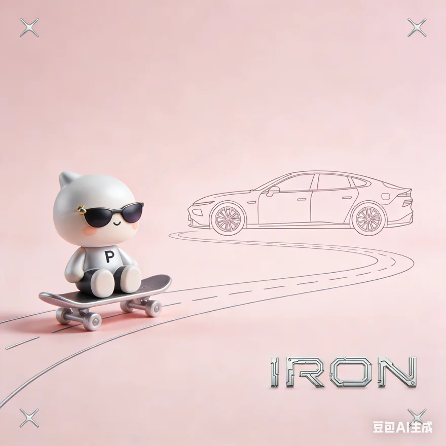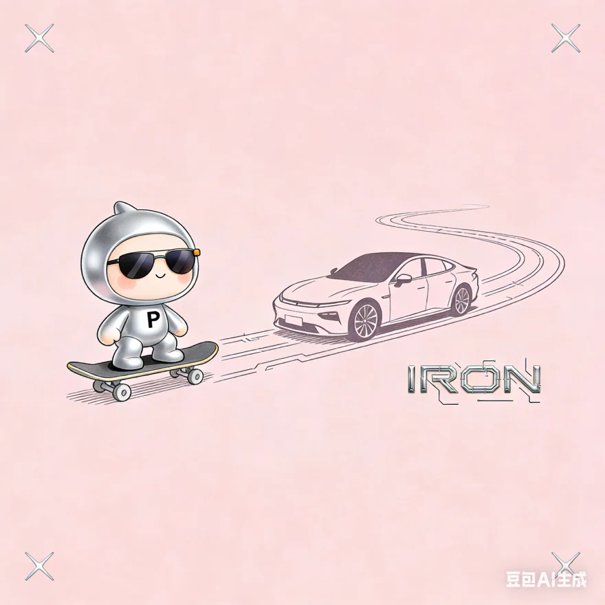 · 左侧/主体:一个Q版卡通形象的小P(将小鹏语音助手拟人化),戴着迷你墨镜,表情又酷又萌,坐在一块滑板上。