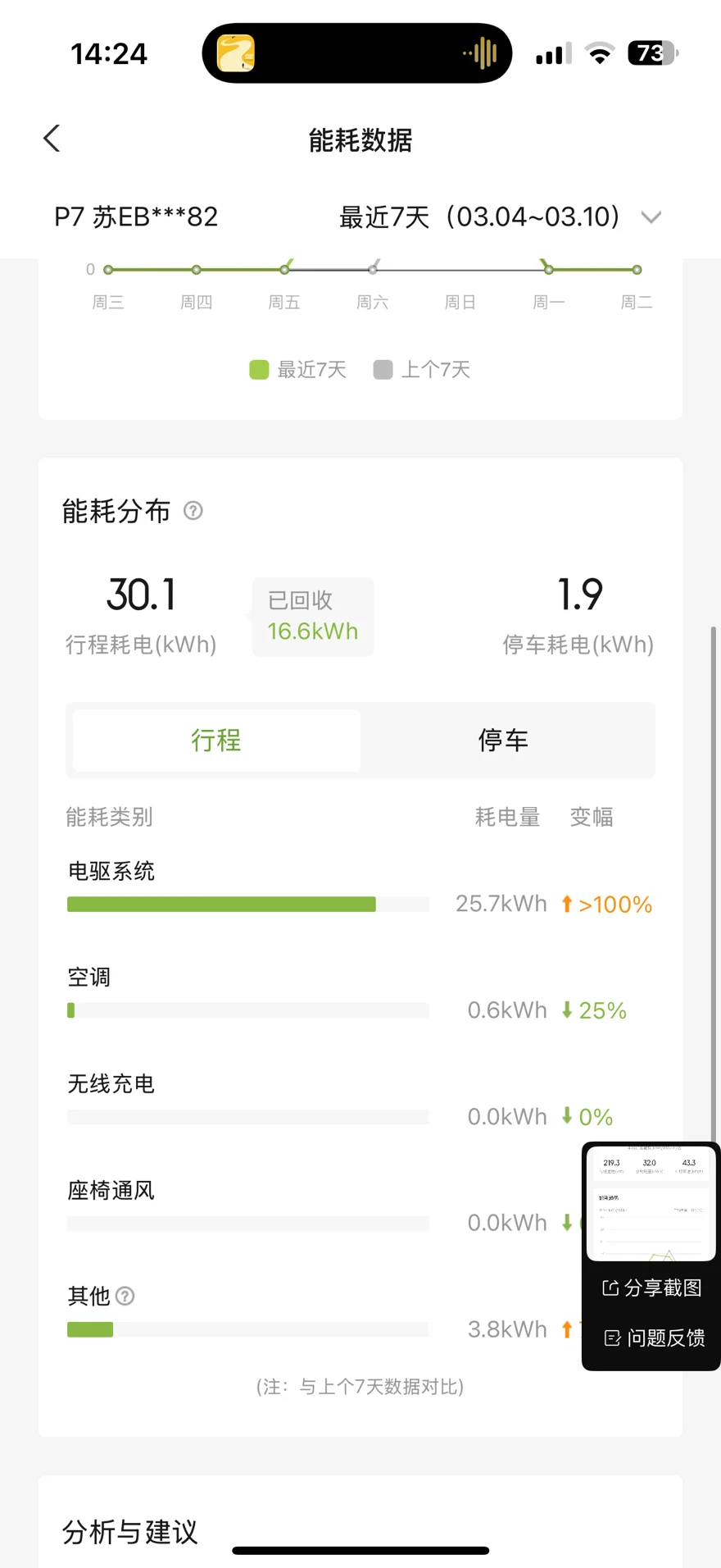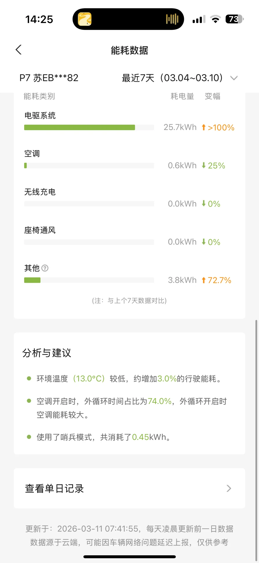 #能耗报告# 最近天气回暖,我的小P7能耗直接掉到12-13,跟冬天一比简直像不要钱哈哈哈哈哈哈之前冬天开暖风+电池加热,动不动就18+,现在不用开空调,电耗瞬间友好多了。分享几个省电小心得:首先动能回收调到最高,松电门就自动减速,既能省电还能减少刹车片磨损;其次现在这天气别开AC,通风模式就很舒服;我试过同样路段,温柔起步、提前预判少急刹,百公里能多省出1度电!这几天开车明显感觉续航更实了,有种"白捡"几十公里的快乐!