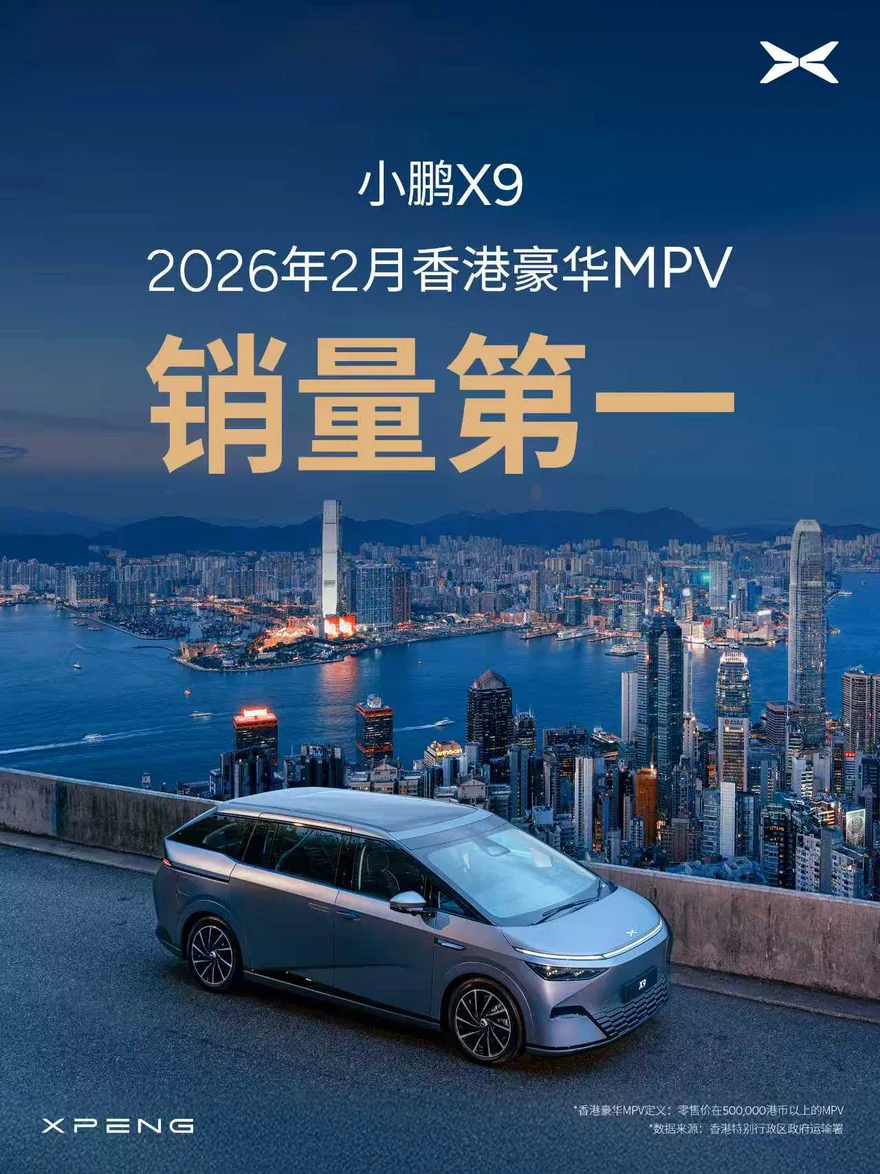 2026年2月,小鹏X9在香港市场再次斩获佳绩,成功登顶豪华MPV销量榜首!尤其是全系标配的后轮转向实现灵活操控,非常适宜香港各种狭窄街道和停车场,持续赢得香港消费者的青睐。与此同时,小鹏X9正快速融入全球高端赛事体系,先后成为香港国际马术盛典官方赞助商、戴维斯杯香港站与香港ATP网球公开赛的指定用车!#小鹏X9登顶香港豪华MPV销量第一##小鹏X9成全球高端赛事指定用车#