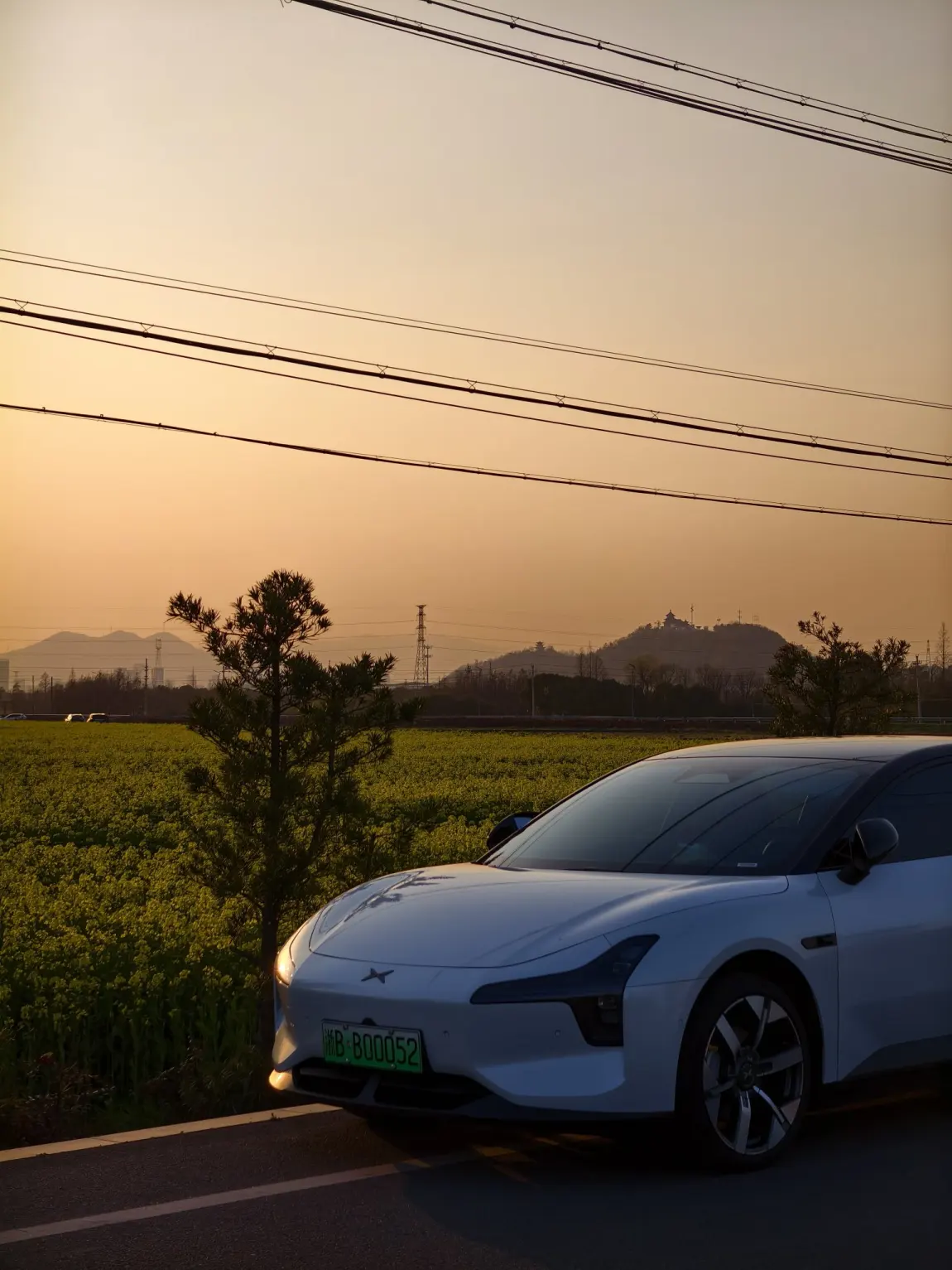 金黄的油菜花漫过山野,暖橙色的日落挂在天边,车轮碾过春风,把城市的喧嚣都留在身后。车停在花田边,看远山含黛,听虫鸣鸟叫,连车身都被春光镀上了一层温柔的金边。