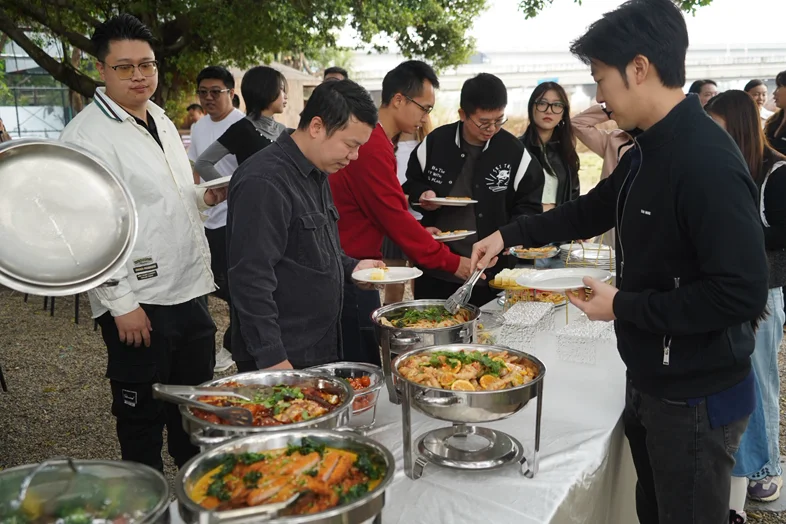 埋头选取自助餐