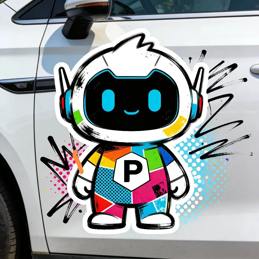 #鹏友共创# 这款车贴我采用潮流涂鸦拼贴风格,使用撞色线条和撕裂拼接的视觉效果,契合街头潮流文化,彰显个性态度,适配追求独特的车主审美。我还将小P进行拆分重组,结合涂鸦标志性的喷溅、手绘线条元素,让吉祥物形象充满动感与活力,强化视觉冲击力。最后我在涂鸦的张扬风格中做减法,控制元素密度,保证整体画面简约不杂乱,让车贴既拥有潮流属性,又不会显得过于浮夸杂乱。