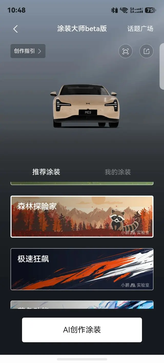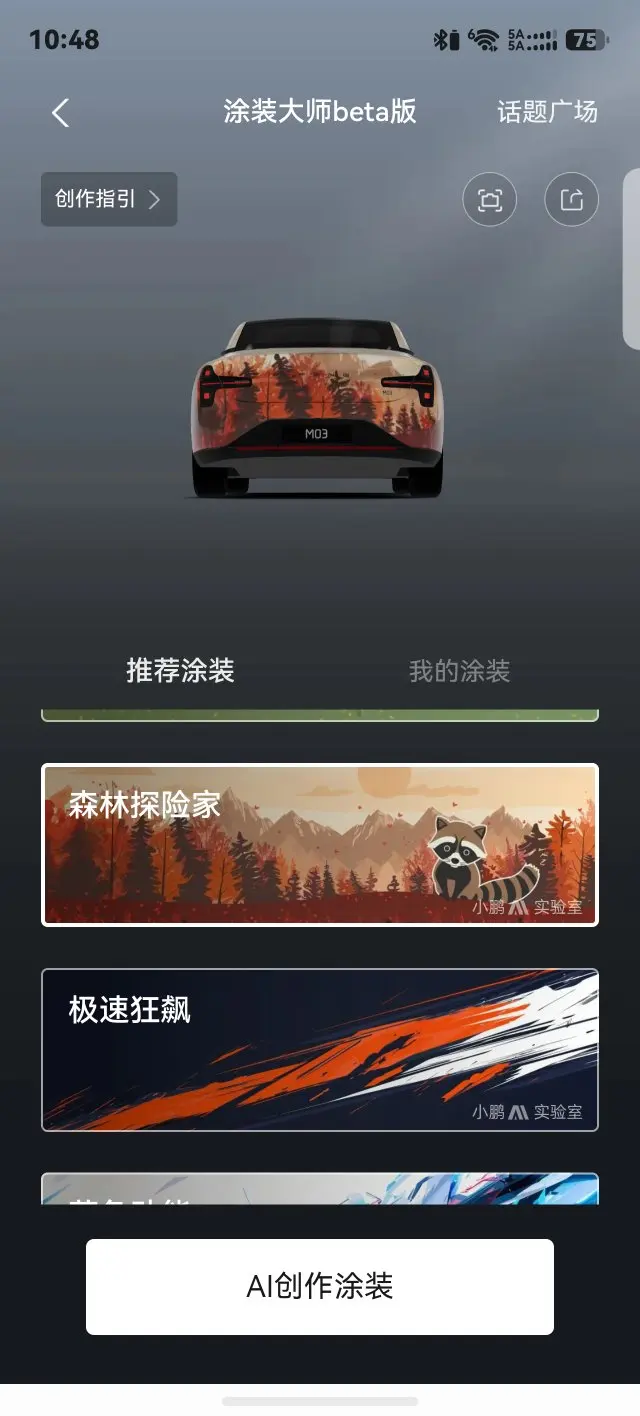 参加小鹏涂装拉花大赛,用线条与色彩给爱车换上专属战衣!简约科技风搭配流动光轨,把未来感与个性拉满,每一处细节都藏着创意与态度。一涂一抹皆是风格,让小鹏成为街头最亮眼的存在。用设计表达热爱,为出行注入灵魂,快来pick我的作品吧