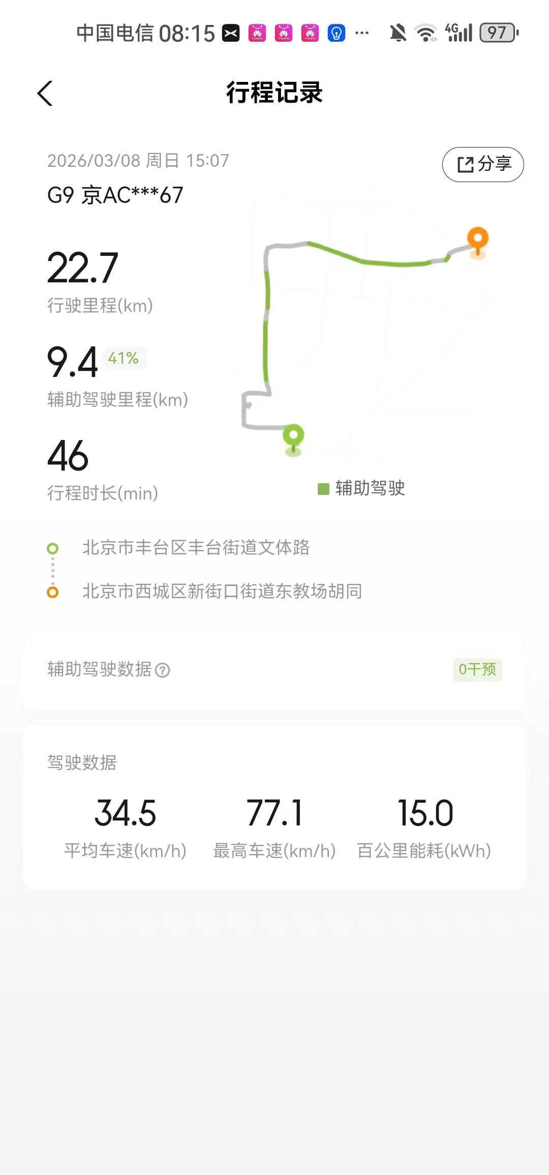 最近北京的风都带着暖意🌿,开着我的小鹏G9跑通勤,最直观的感受就是——最省电的日子来了!这几天明显稳多了,平均能耗比上周降了快两成。尤其是用NGP跑通勤的时候,车机自己规划车速、跟车,少了好多急加速急刹车,能耗比我自己开还温柔,一趟下来电掉得特别慢。