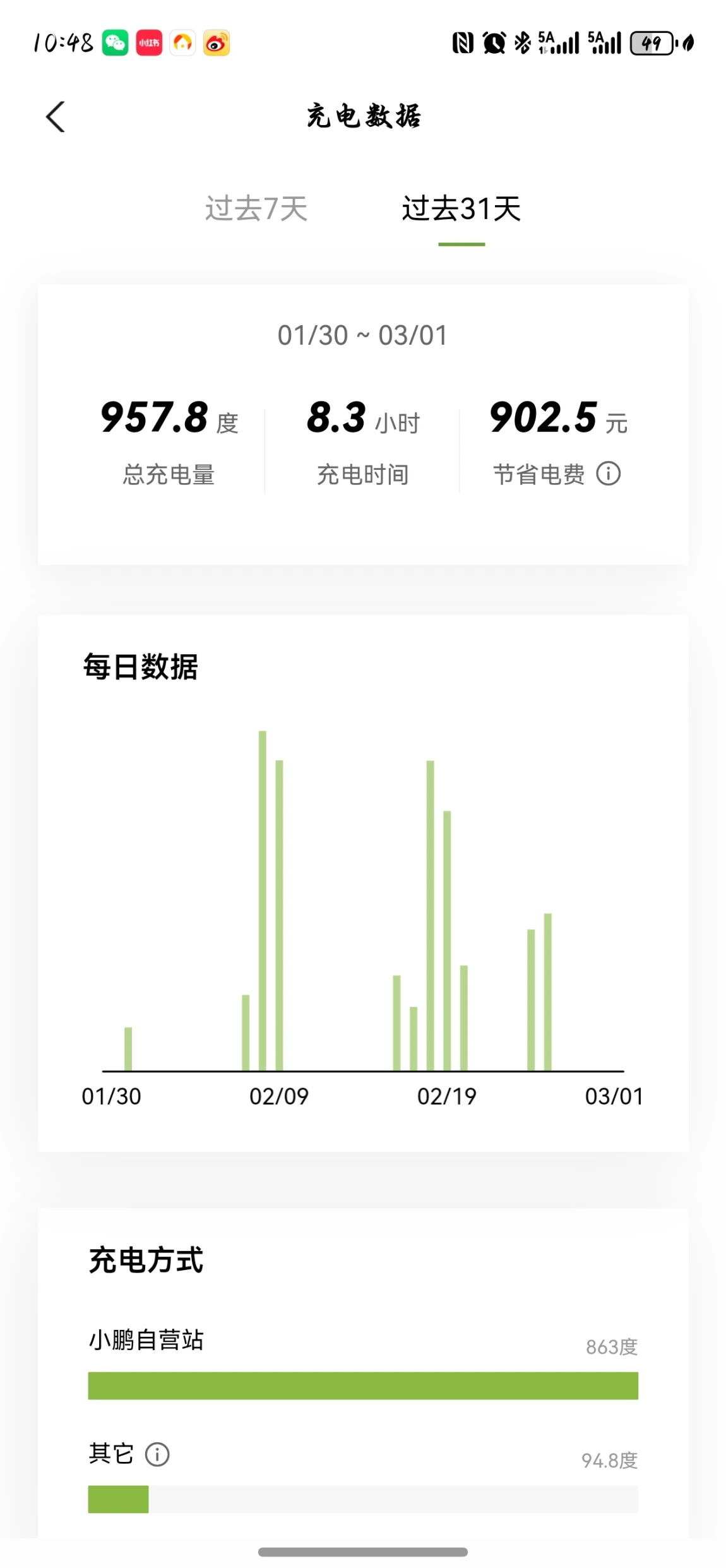 充电基本都选小鹏自营站,速度快还省心,长期下来也能省不少电费。