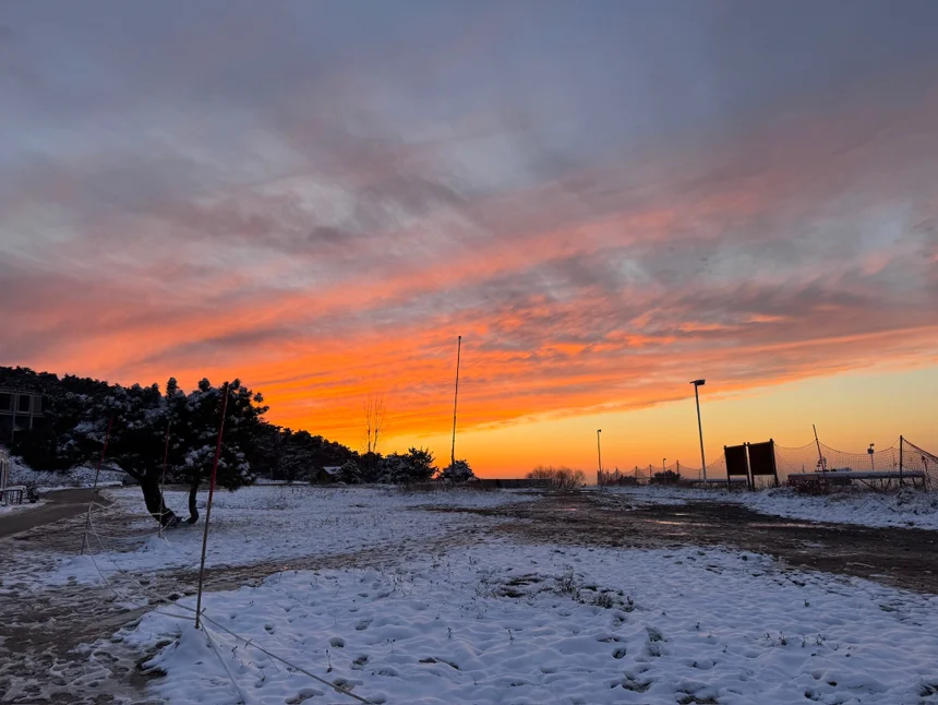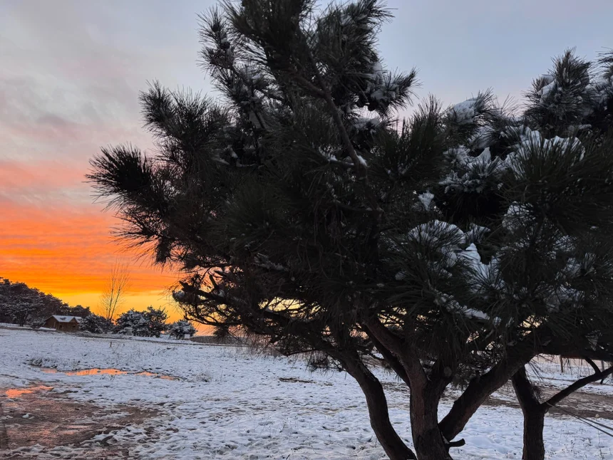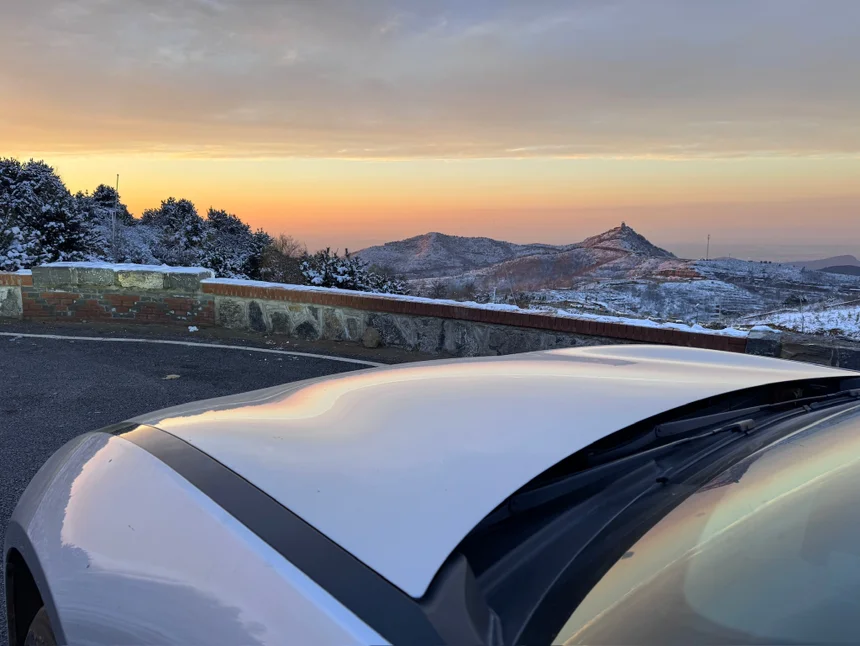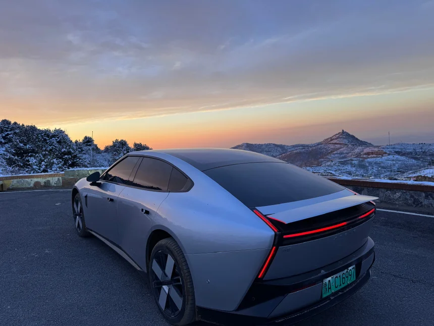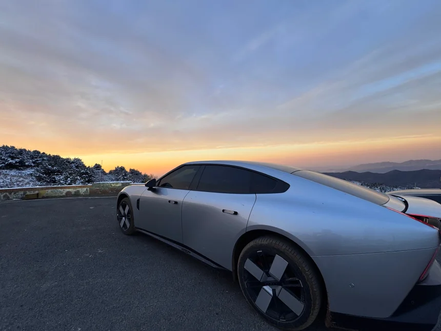 下雪天的小鹏p7配上超美的日落!!!