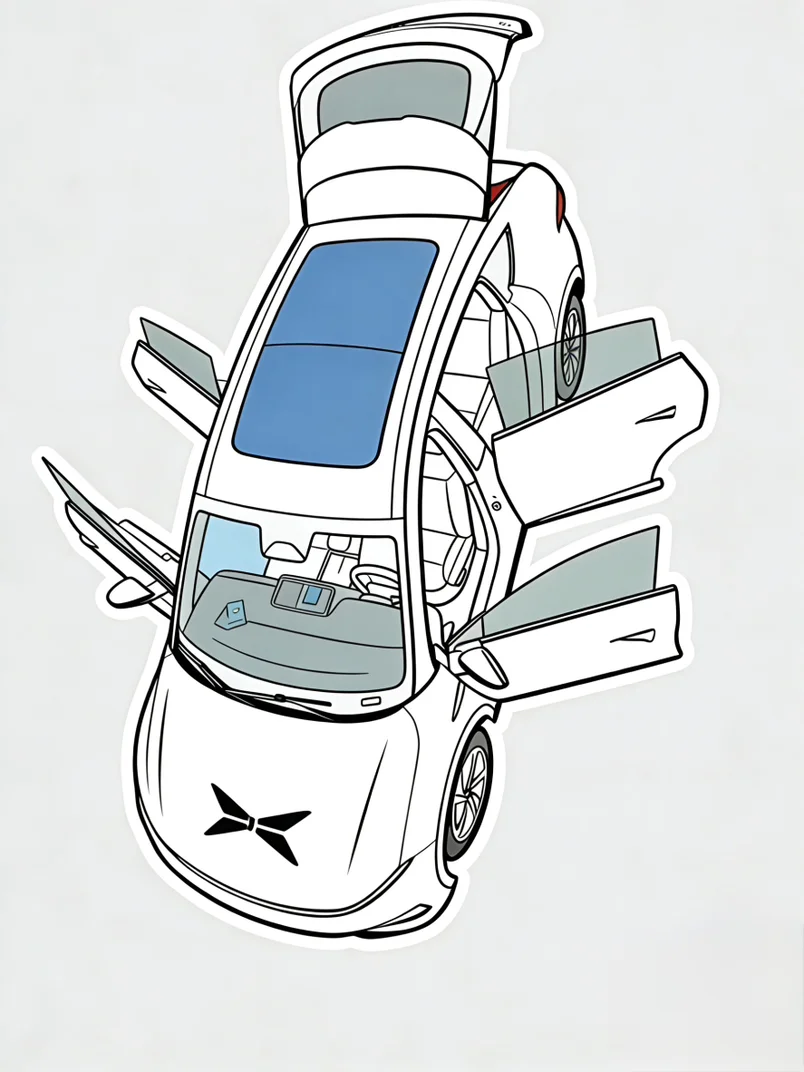 #鹏友共创# 设计灵感源于小鹏“未来感+极简科技”的调性,以俯视视角呈现车辆全开舱姿态,凸显电动智能的开放交互。车头标志强化品牌识别,蓝灰配色呼应科技冷静,线条简约流畅,既保留机械美感,又传递“智驾生活”的自由与探索精神,适配年轻科技爱好者审美。