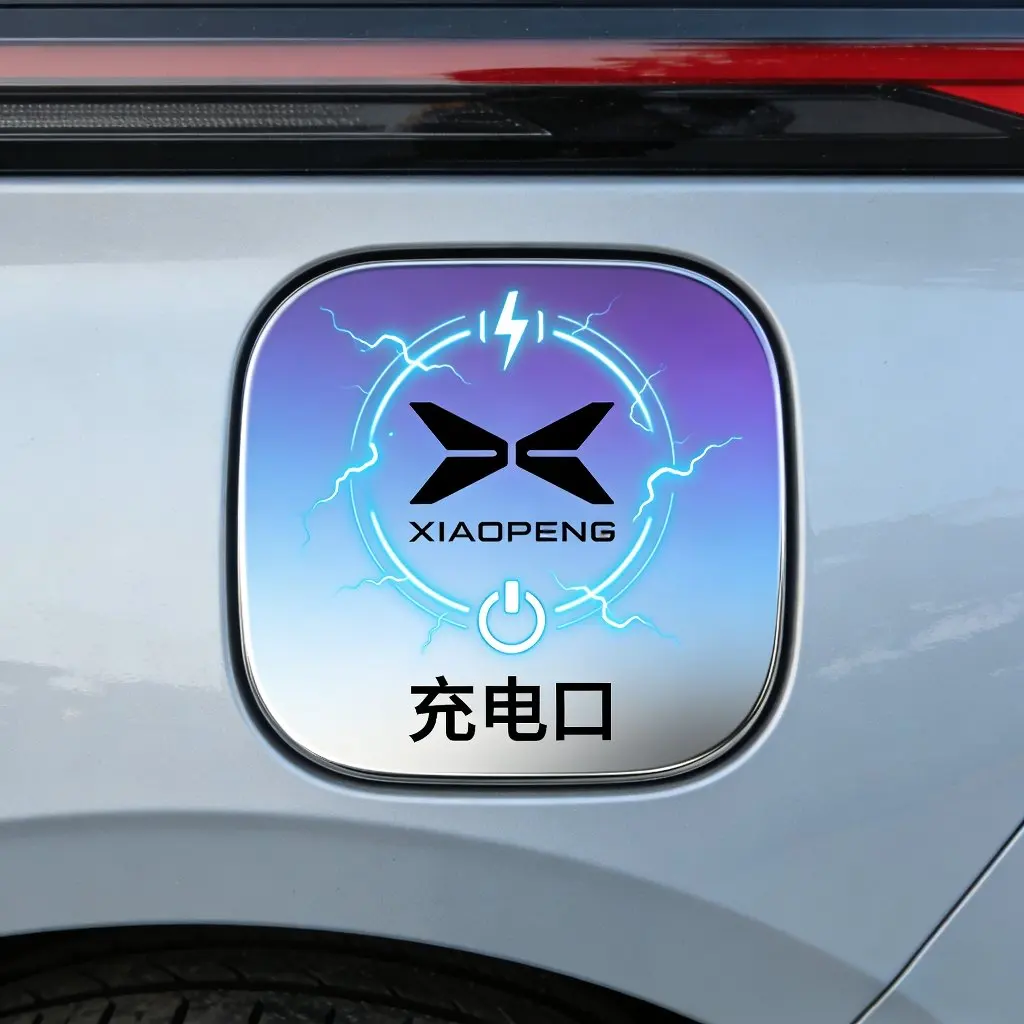 聚焦小鹏充电口场景,以X形LOGO为视觉中心,融合蓝紫渐变光影与电力符号。保留电源标识及“充电口”文字,去繁就简,视觉上既点明充电属性,又传递出智能、高效的新能源出行态度,科技感十足。