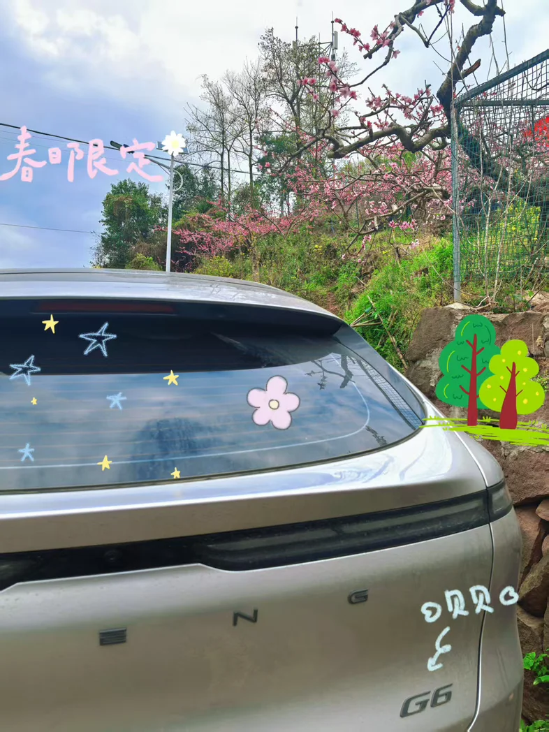 雨天刚过 还没来得及洗车就迎来了最美春光 就算如此 我的脏脏车也能在花丛中绽放最美一面 雨滴痕迹就算是最美点缀啦~不负好春光