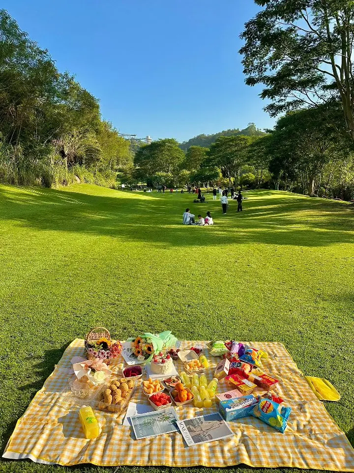 1️⃣ 超大草坪区,特别适合搭帐篷、铺野餐垫,小朋友可以随便跑,还能放风筝!