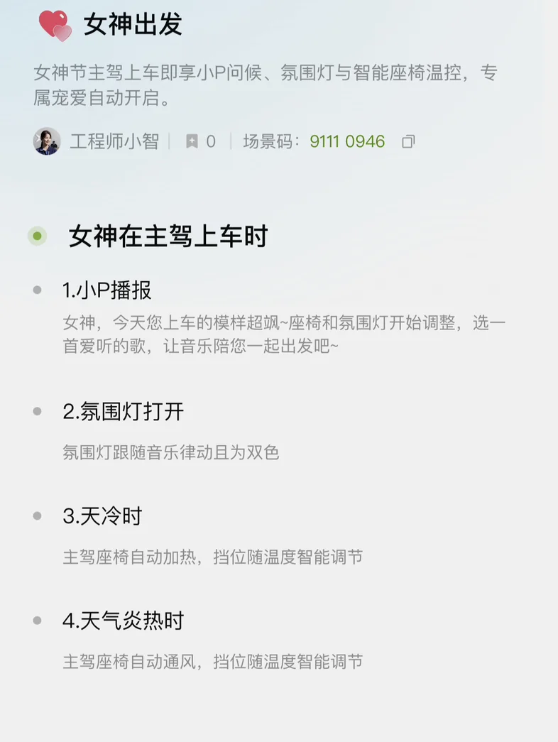 #玩转智慧场景# 把温柔与仪式感装进车厢,致敬每一位了不起的她✨用一句语音、一键场景,把妇女节的仪式感装满整个车厢。不用刻意准备,智能座舱里的每一处细节,都是藏在日常里的浪漫与敬意。愿每一位女性都能自在发光,妇女节快乐。