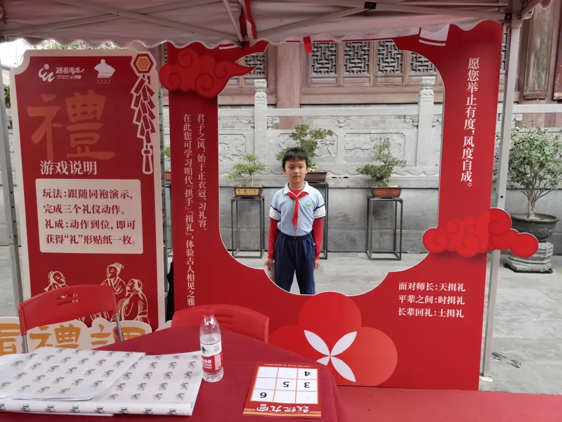 - 跟着老师学明代礼仪,拱手、揖礼一套下来,娃学得有模有样,还拿到了「礼」字贴纸,骄傲得不行。