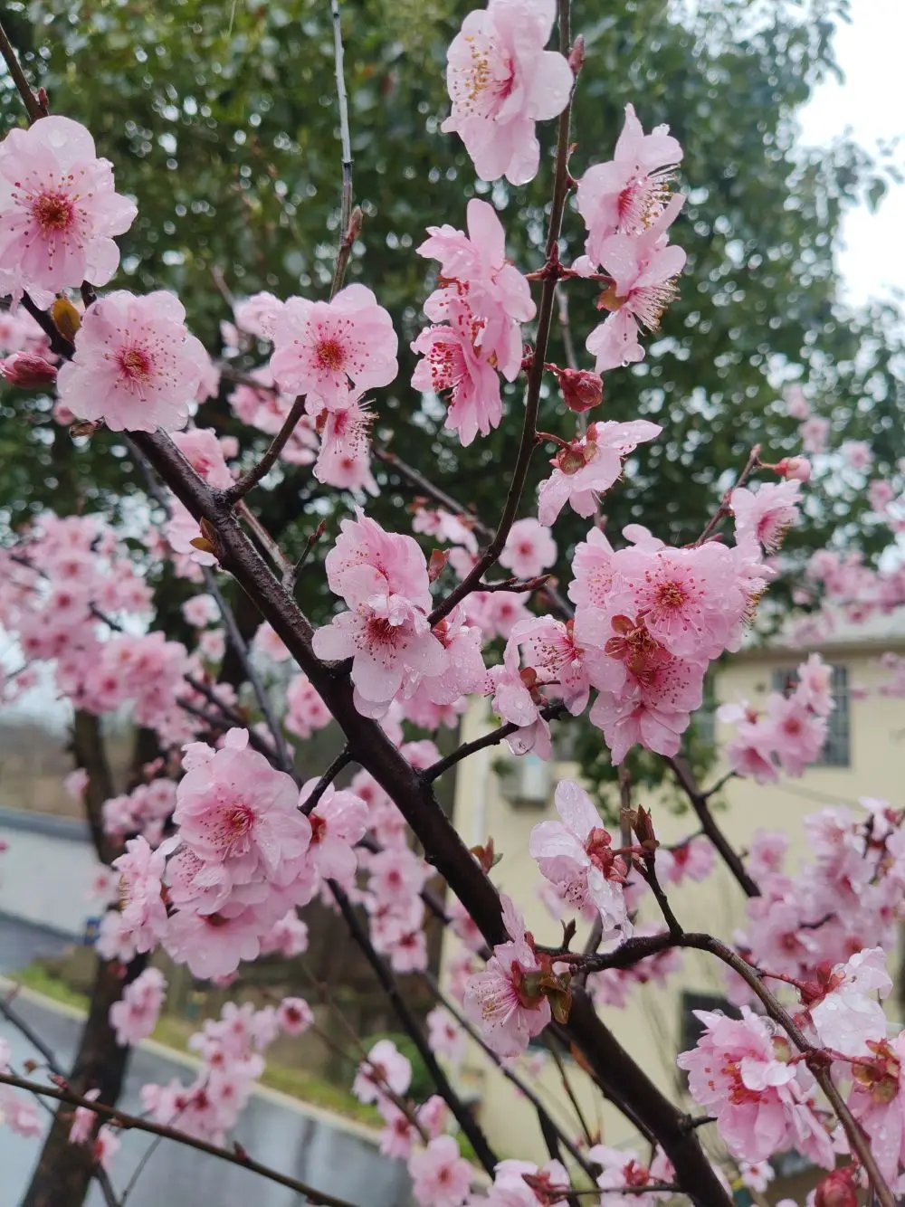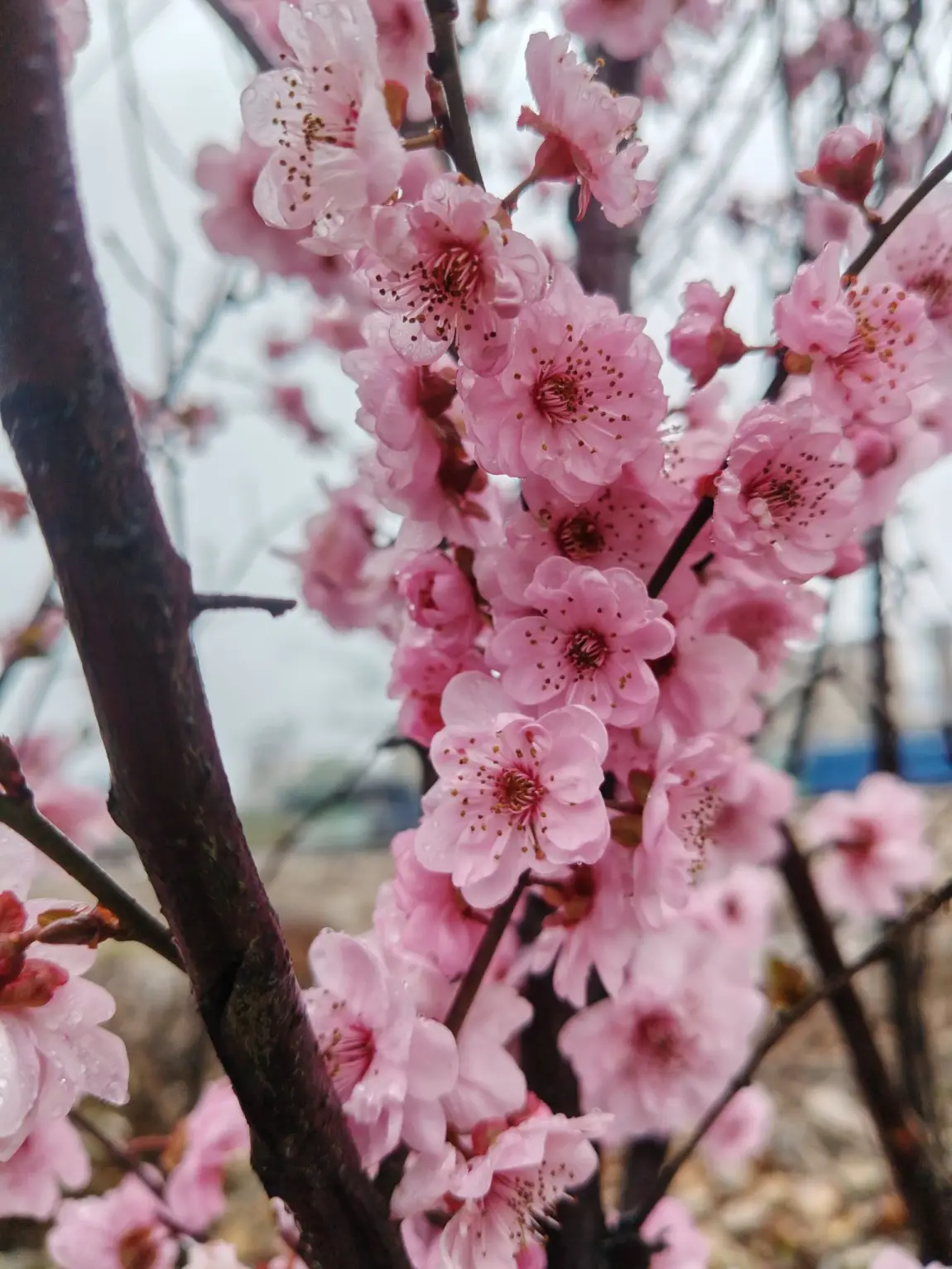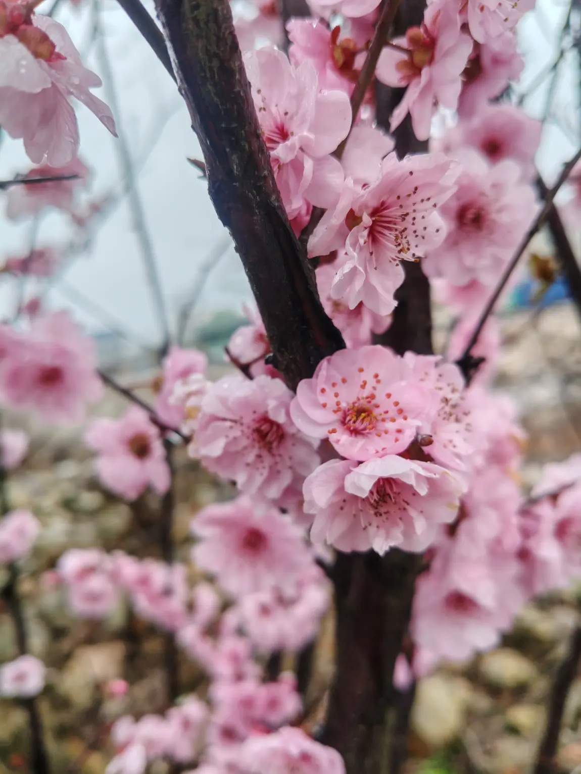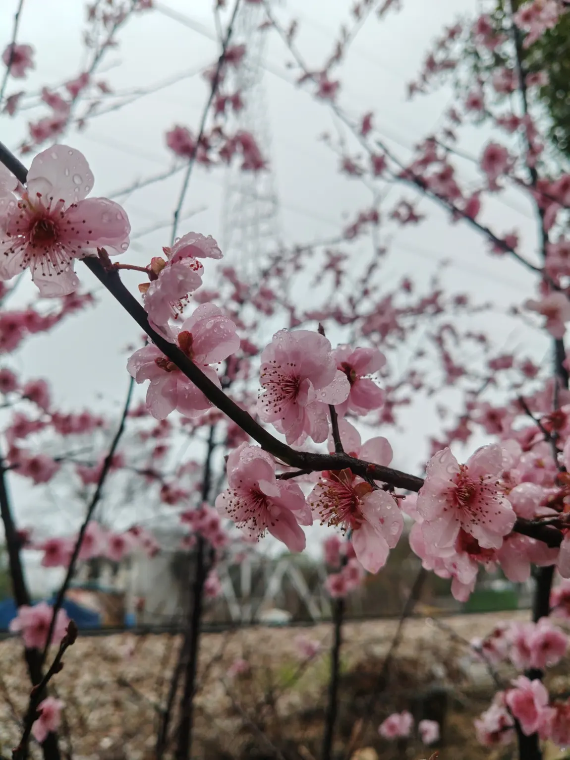 刚踏入田野,清新的泥土气息便扑面而来。路边的草芽已悄悄钻出地面,嫩绿得仿佛能掐出水来。远处的山坡上,粉白的桃花、杏花竞相绽放,像一片片轻柔的云霞落在枝头。走近细看,花瓣上还挂着晶莹的露珠,在阳光下闪烁着微光,宛如撒落的碎钻。