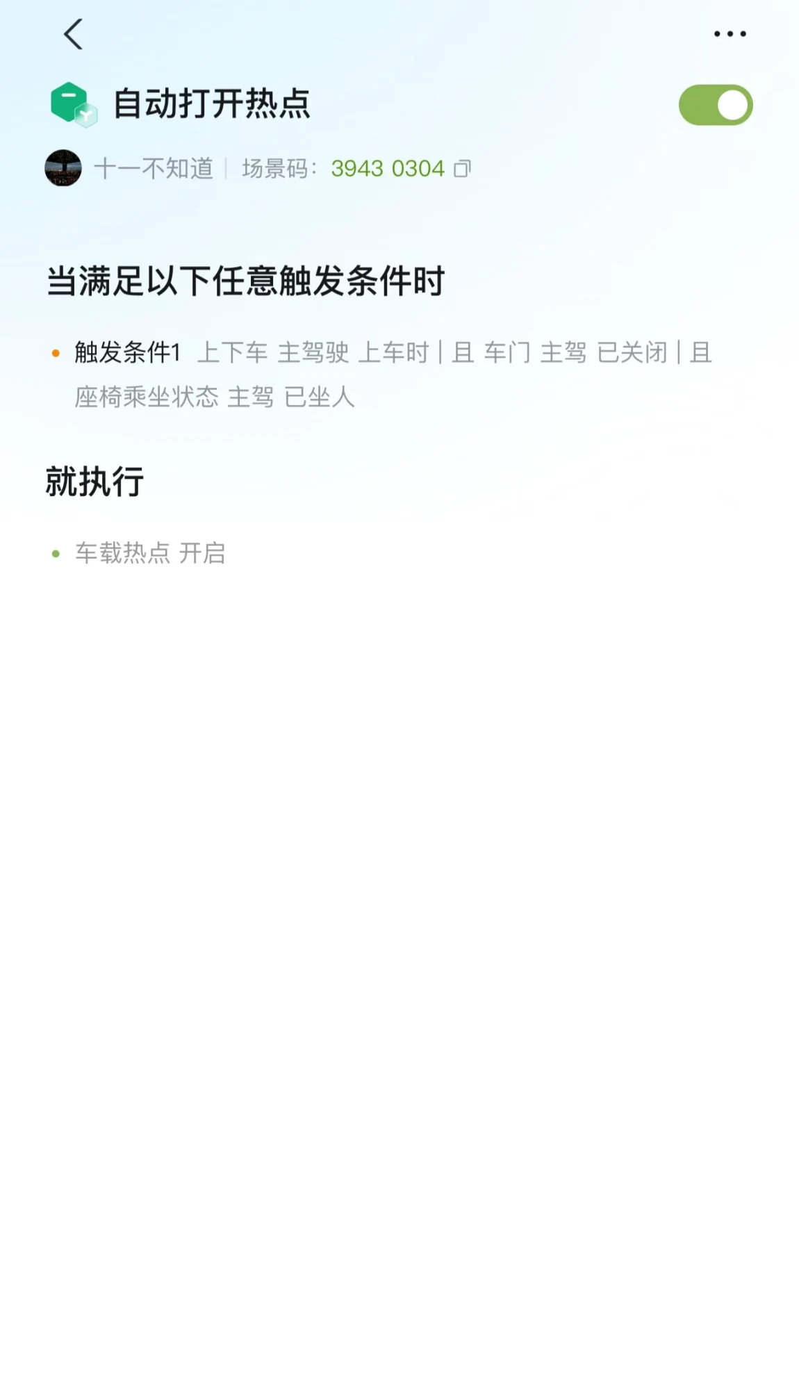 喜欢这个智慧场景,叠加车机流量包,每次朋友上车都自动打开热点,非常方便。