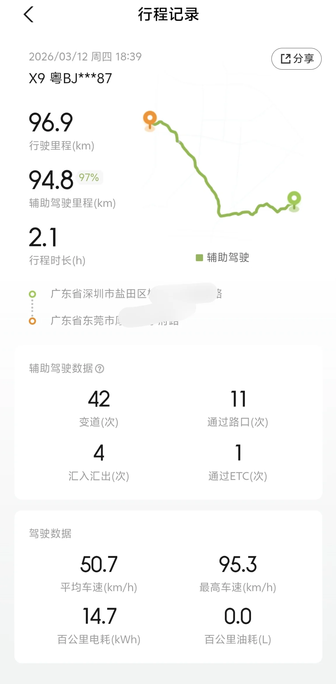 小鹏X9超级增程的能耗表现实在令人惊艳!如此大的一个MPV,在城区结合快速路的工况下,竟能跑出这般数据,真实力令人叹服!