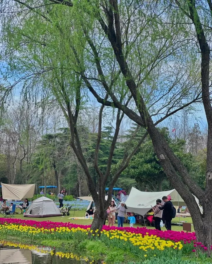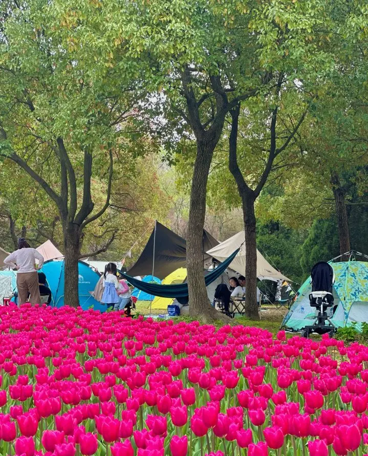 鹏友们!上海滨江森林公园真心是春季魔都神仙露营地!🌿 这片“城市绿洲+湖畔花海”的组合直接封神!帐篷搭在花树下,躺下花瓣落满脸。