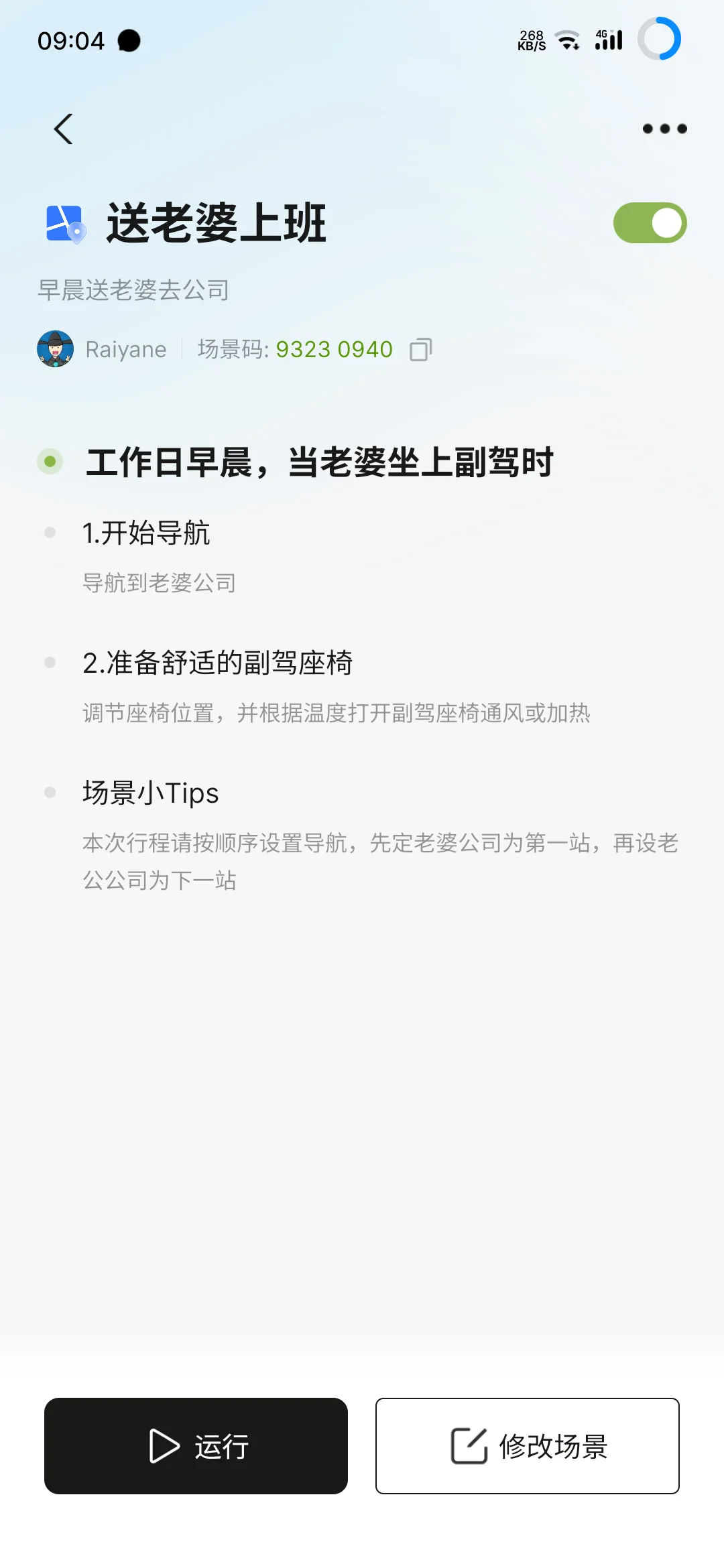 智慧场景设置一个女神大人的场景码,每天早晨载着女神去上班,别提多惬意了!