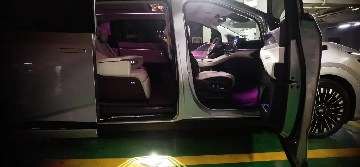 #小鹏汽车 #晒出小鹏X9花式车灯 光影随行,悦享星河夜幕下,小鹏的智能大灯如锐利双眼,自动点亮前路;解锁瞬间,迎宾光毯铺满地面,车内“星河律动”灯带随音乐轻舞。256色氛围灯温柔漫射,仿佛将整片星空搬进车厢。每一次出发,都是科技与浪漫的深情邂逅。每天一个氛围感。