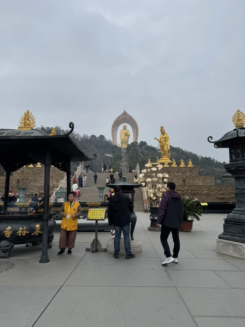 #我和春天有个约会# 趁着这个春天,跟对象一起自驾去了九江的东林大佛,说是春天,但是当天气温还是不高,还得羽绒服保暖,春天就得忙里偷闲去得到它,它时而出现,时而躲藏,要把握每一个迎接春的机会,春装冬装都要放车里带好,时刻准备迎接春天,这次来到东林大佛还有一个小心愿,听说这个大佛很灵验,是中国最高的金质大佛,所以特地赶在对象教资考试前来到此处,一起祈福,希望对象教资能顺利通过,到时再来还愿!希望春天能给大家带来好心情,也祝福各位小鹏友能够开开心心每一天!