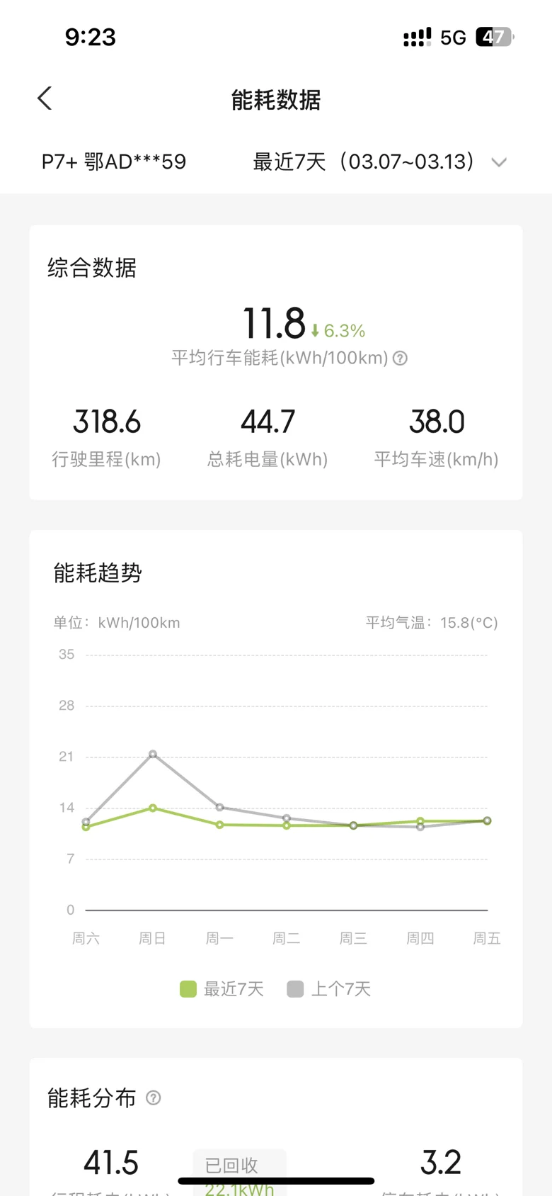 #能耗报告# 开春以来,P7+的能耗表现很亮眼。气温回暖,电池活性足,城区通勤电耗基本稳定在13-15度/百公里。早晚高峰用高回收,平顺跟车很省电。周末郊区往返两百公里,空调开得少,NGP一开,能耗更低。总之,天时人和,是电车最舒心的季节。