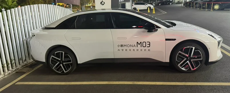 #小鹏汽车 #小鹏MONA终于给我的小鹏MONA M03换上了「星河白·极简科技风」新装✨作为一名科技爱好者,一直想让爱车和智能属性更贴合,这次选择了纯粹的星云白底色,搭配银灰色线条勾勒车身轮廓,既保留了原车的优雅溜背线条,又强化了未来感与科技氛围。以“极简科技”为核心,用干净的白色基底呼应AI智能的纯粹感,银灰色线条模拟电路纹理,让车身在夜晚灯光下更具流动感,完美契合小鹏MONA的智能轿跑定位。并配上小鹏的宣传标语,让人分不清我到底是不是试驾车啦!