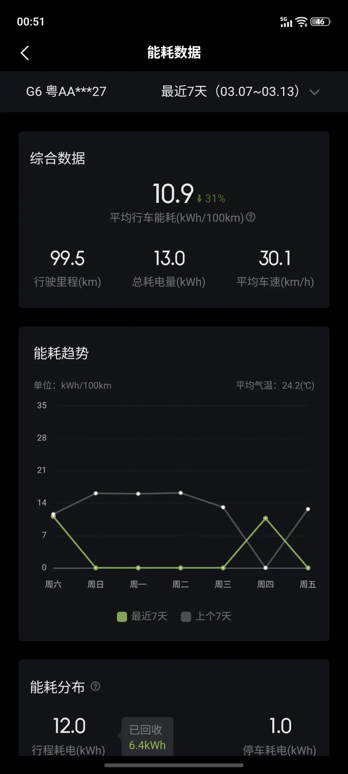春和景明的天气最适合户外,老六的能耗也还是一如既往的给力,市内通勤的能耗基本都是12以内