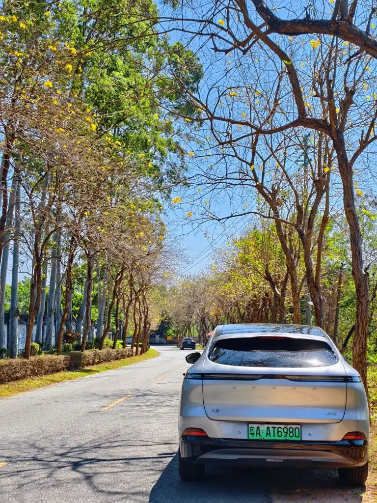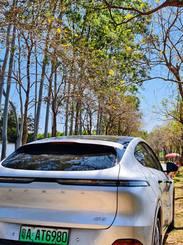 🌼一路开着车穿梭在满是金黄的花道里,风从车窗吹进来,带着淡淡的花香,银色的G6穿梭在蓝天、绿树与黄花之间,流畅的车身线条和春日的适配度直接拉满,随手一拍都是氛围感大片。