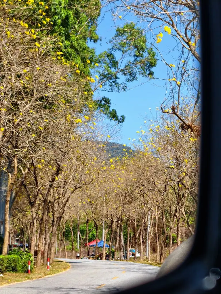 ——车窗框景:坐在车里,用车窗做天然画框,拍窗外的花道,随手一拍都是自带电影感的春日画面。