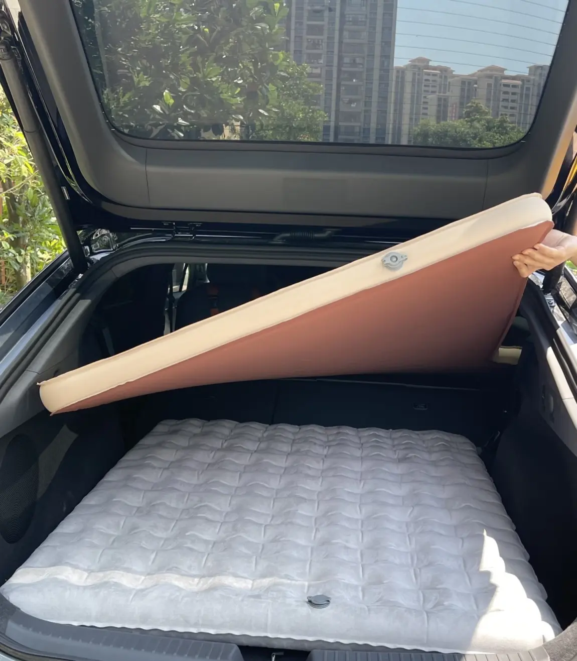 #小鹏汽车 #小鹏P7加年轻家庭首选轿车 #小鹏P7加今日不试驾试睡 #床车 今天正好来体验新的P7配色,顺便比较了下与P7+的空间,发现P7也不小,但是睡觉的话估计P7+舒服一些,头部空间明显高很多,,先晒一下大空间,然后是铺上底垫,上面再加一层海绵层,铺上防沾污的床单布,最后再铺上一层买来的表层垫子就好了,要睡觉就是要舒适,不要说我铺的厚,舒适第一位,当然如果露营就带最后那个垫子就好了。
