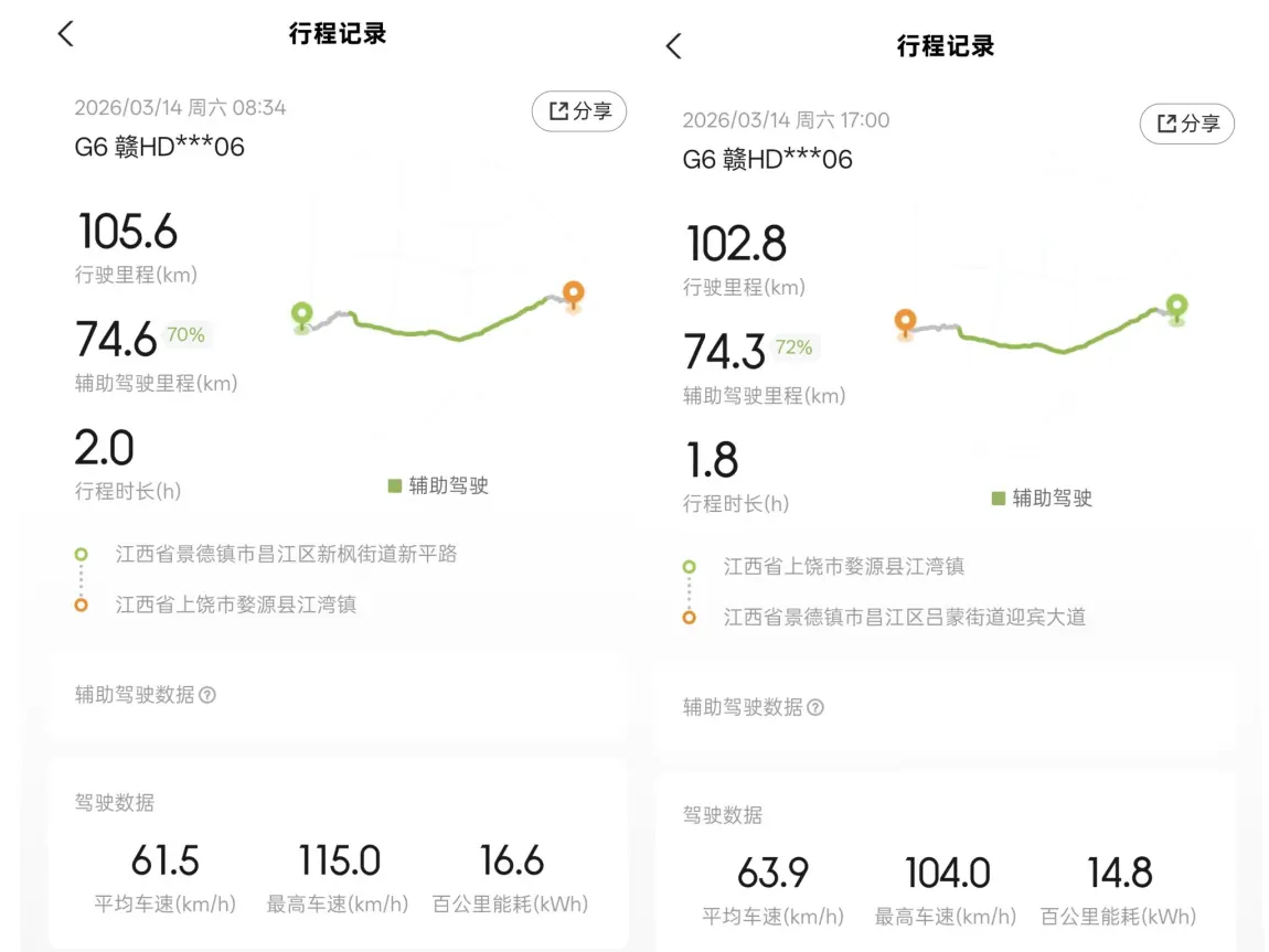 2️⃣小鹏G6全程靠谱,电耗空间智驾都很稳