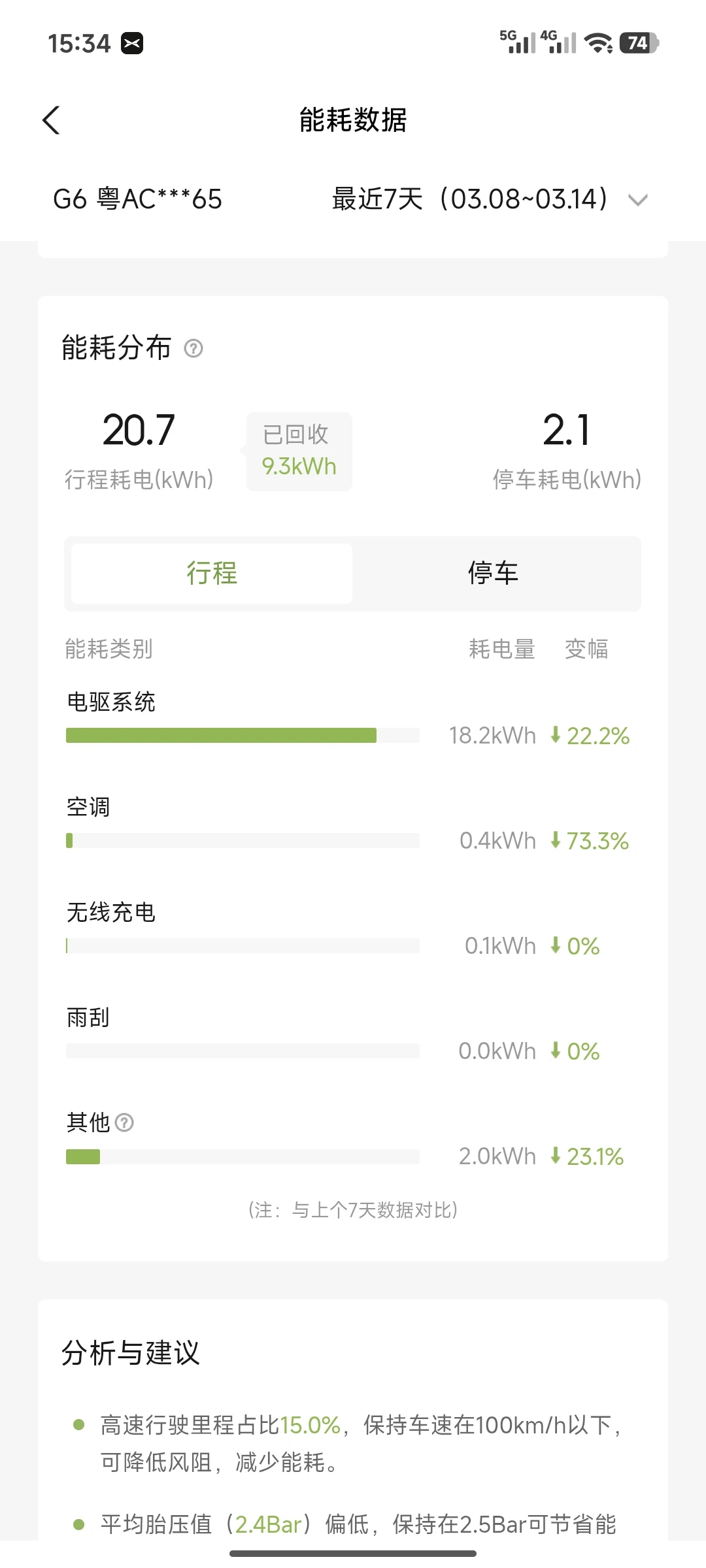 #能耗报告# 最近一周,我的G6的综合能耗比之前有所下降,城市通勤和高速跑法都更省电。停车待机耗电也明显减少,说明车辆状态管理更优。天气回暖,空调使用减少,对整体能耗有正面影响。整体来看,用车习惯和车机智能调节让能耗保持在理想水平,电更耐用了。G6不仅颜值在线,开起来也很顺手。超快充和长续航让出行更自由,XNGP智驾在拥堵和高速都能减轻驾驶压力,让每次驾驶都舒适省心。又很会“过日子”,是真正懂用户的新能源好车。