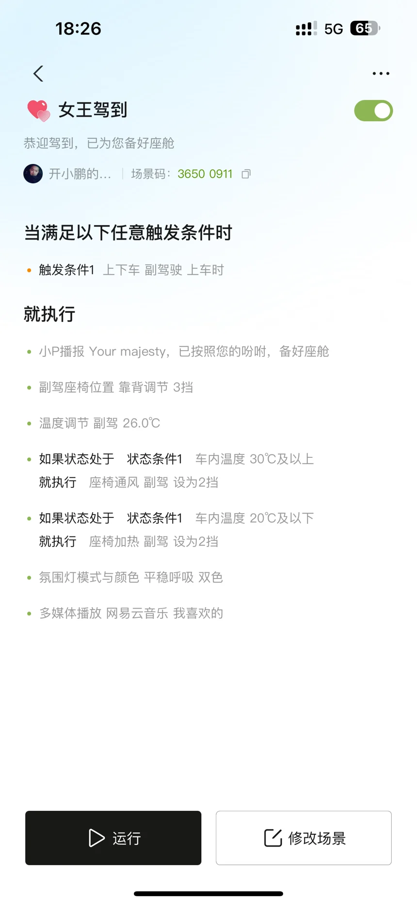 女王驾到模式安排一个,老婆上车给他放她的网易云歌单,调节舒适座舱