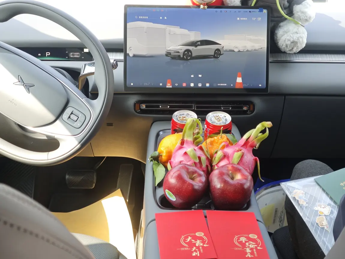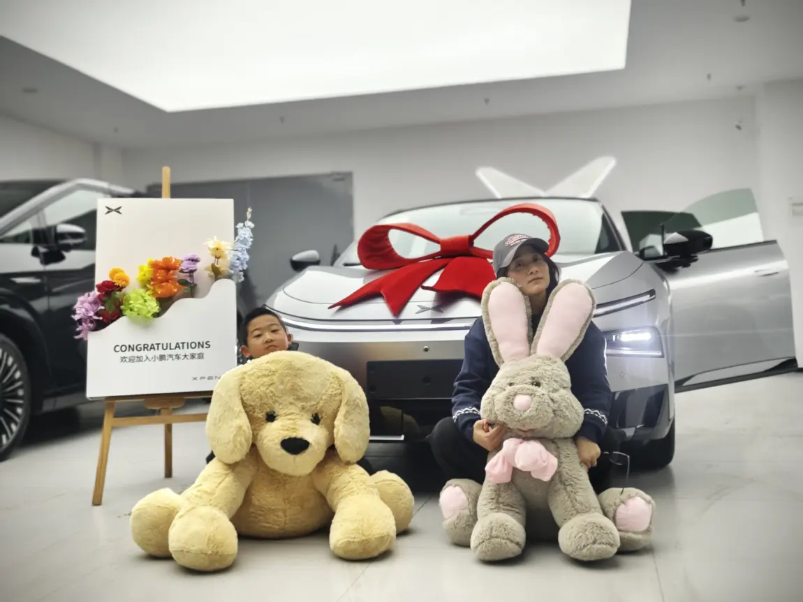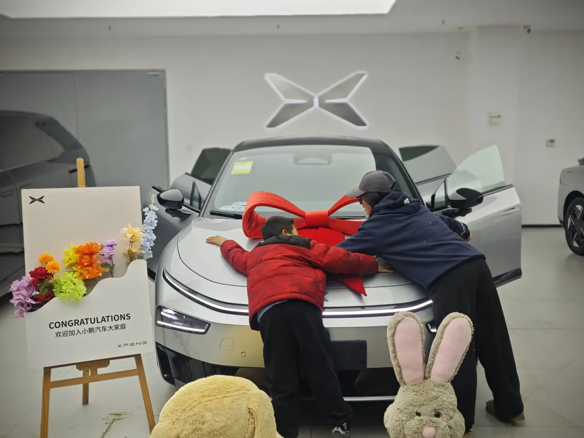 提前和交付专员约好时间,到店后签到→验车→办手续→临牌→交车仪式一气呵成,全程不到2小时,没有多余环节。交付区布置了鲜花、小鹏公仔,还帮忙拍了交车照,仪式感拉满。验车时专员全程陪同,绕车检查漆面、无框车门、电动尾门、星环灯,车内测试屏幕、语音、空调、座椅功能,逐项确认无误,新手也不用慌。随车充电枪、工具包、说明书清点齐全,交接清晰放心。