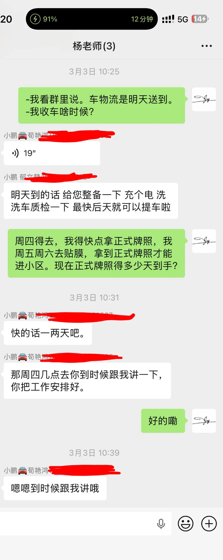 👉速度:从下定到提车一共3天,周日下定,周一发货,周三到城市,周四提车。
