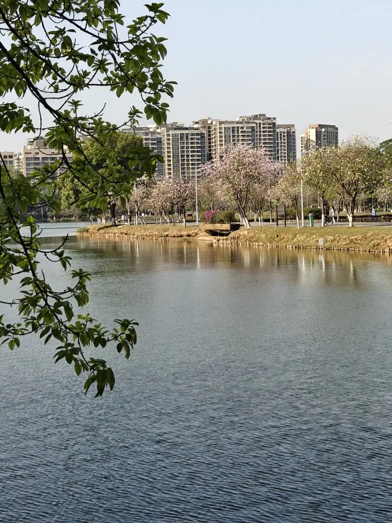 #我和春天有个约会# 松山湖的春日,是藏在每一片新叶与每一朵花开里的温柔。阳光透过高大的乔木洒下斑驳光影,脚下的步道延伸向远方,两旁绿意盎然,空气中弥漫着草木的清新。湖面如镜,倒映着岸边的宫粉紫荆与白花羊蹄甲,粉白的花瓣在微风中轻轻摇曳,仿佛在低语春天的秘密。一只小狗在湖边驻足凝望,尾巴轻摇,似乎也被这宁静的湖光山色所吸引。这样的景致,让人不由自主地放慢脚步,内心涌起一种久违的轻松与喜悦。春天的气息不仅来自视觉的盛宴,更来自心灵的舒展——当城市生活的喧嚣被湖水与花香过滤,只剩下纯粹的宁静与满足。在这里,每一口呼吸都带着自然的馈赠,每一次驻足都是一次与春天的深情对话。松山湖的春,不只是风景,更是一种让人心生欢喜的生活方式。