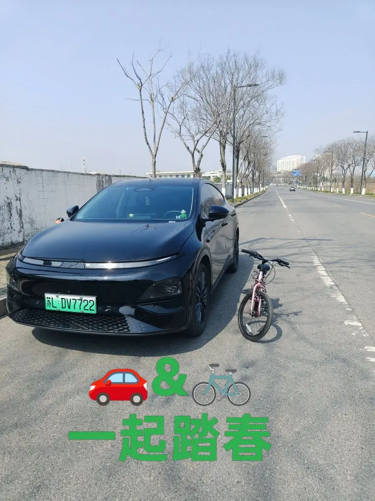 图四大车,小车一起集合,小鹏的后备箱可以装下整个自行车。不比X9差吧。哈哈哈,我的G6空间可是很大的,适合家用!出门装装装